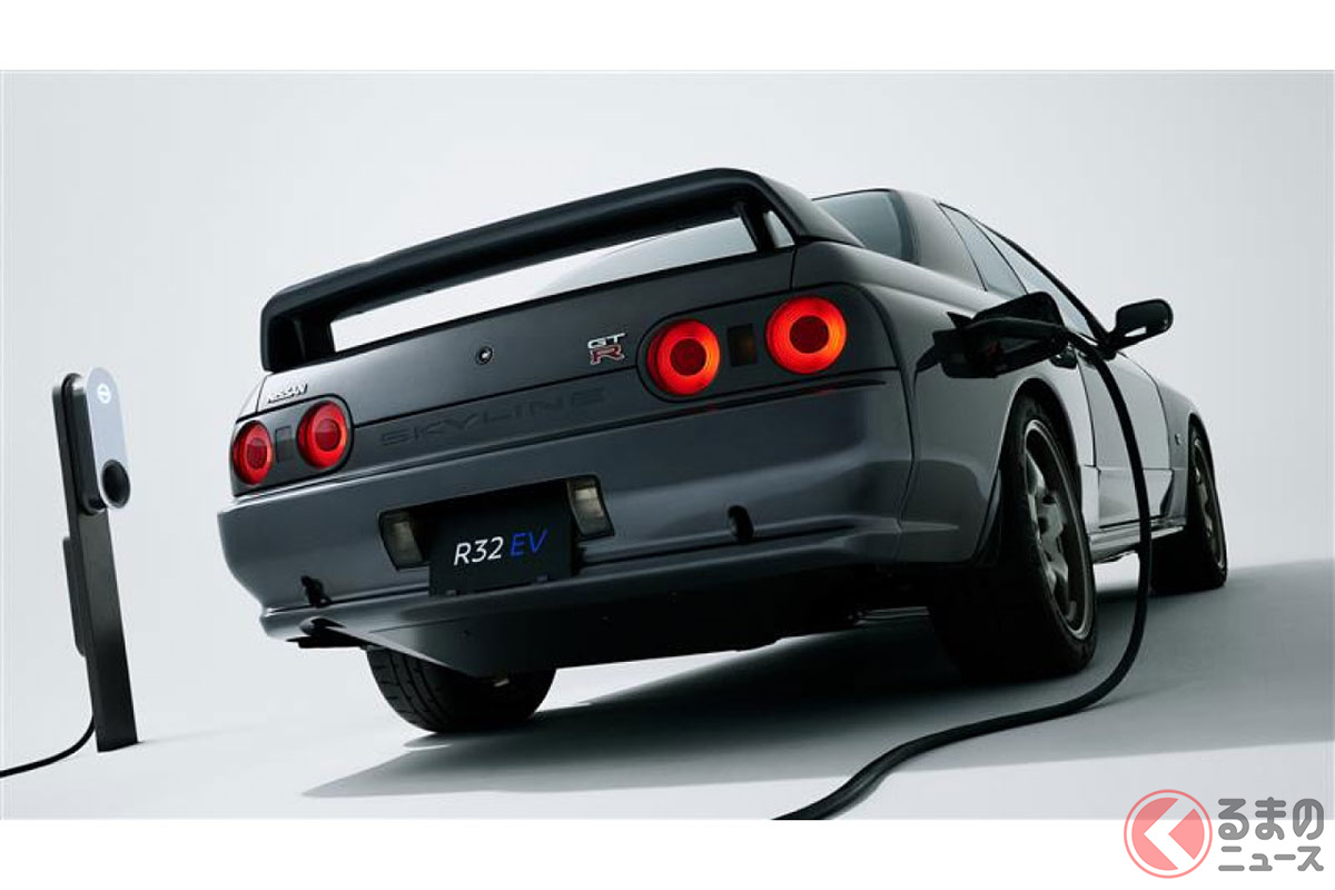 日産「“R32”スカイラインGT-R」が“ATの電気自動車”に!? 平成の名車を「エンジン外して魔改造」で“賛否両論”の渦に! しかし実は「次期型GT-R」につながる「開発テーマ」があった?