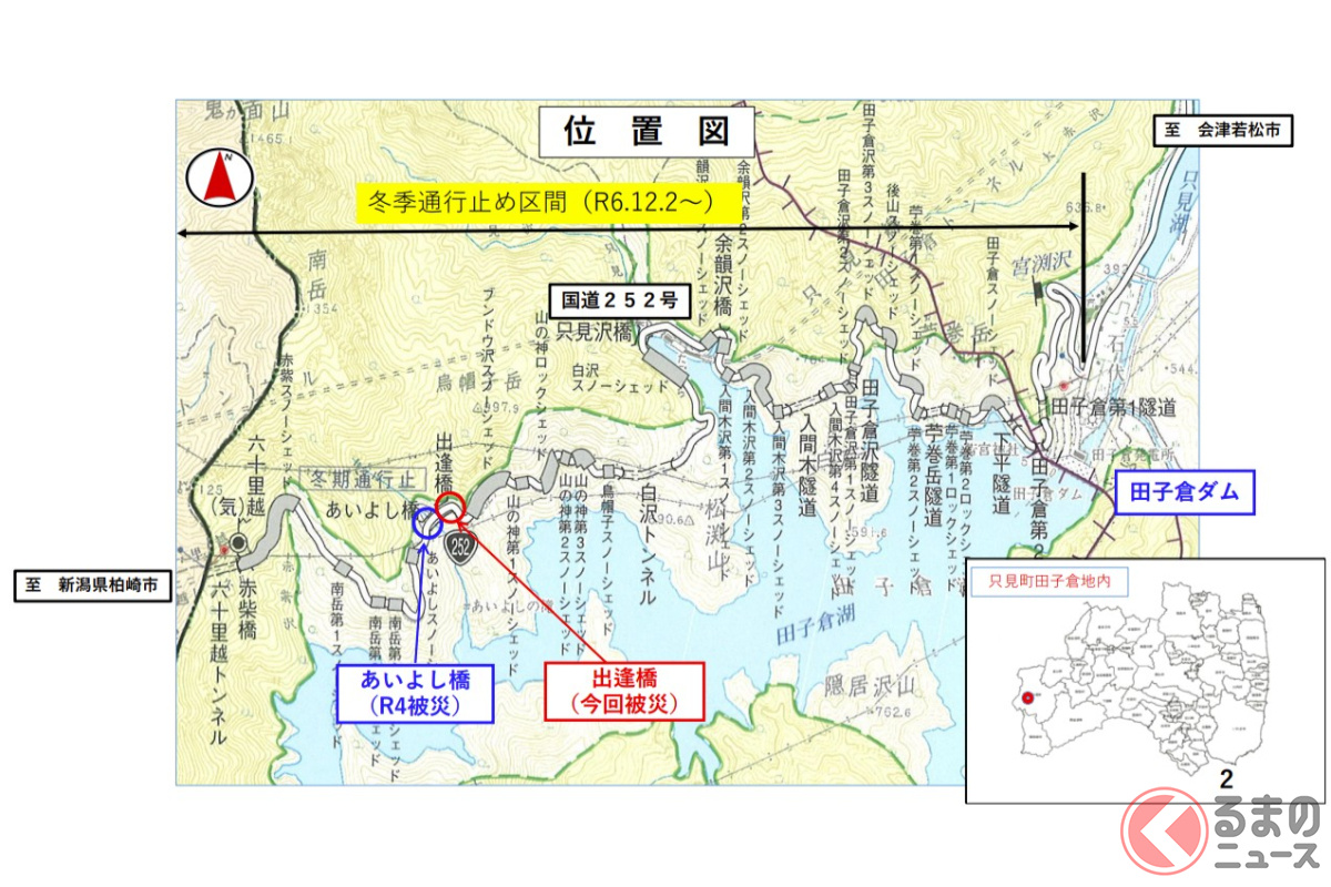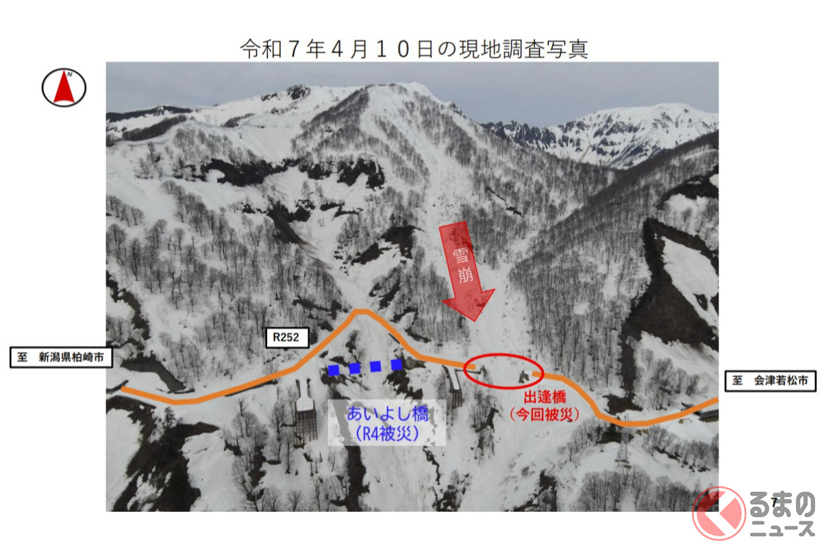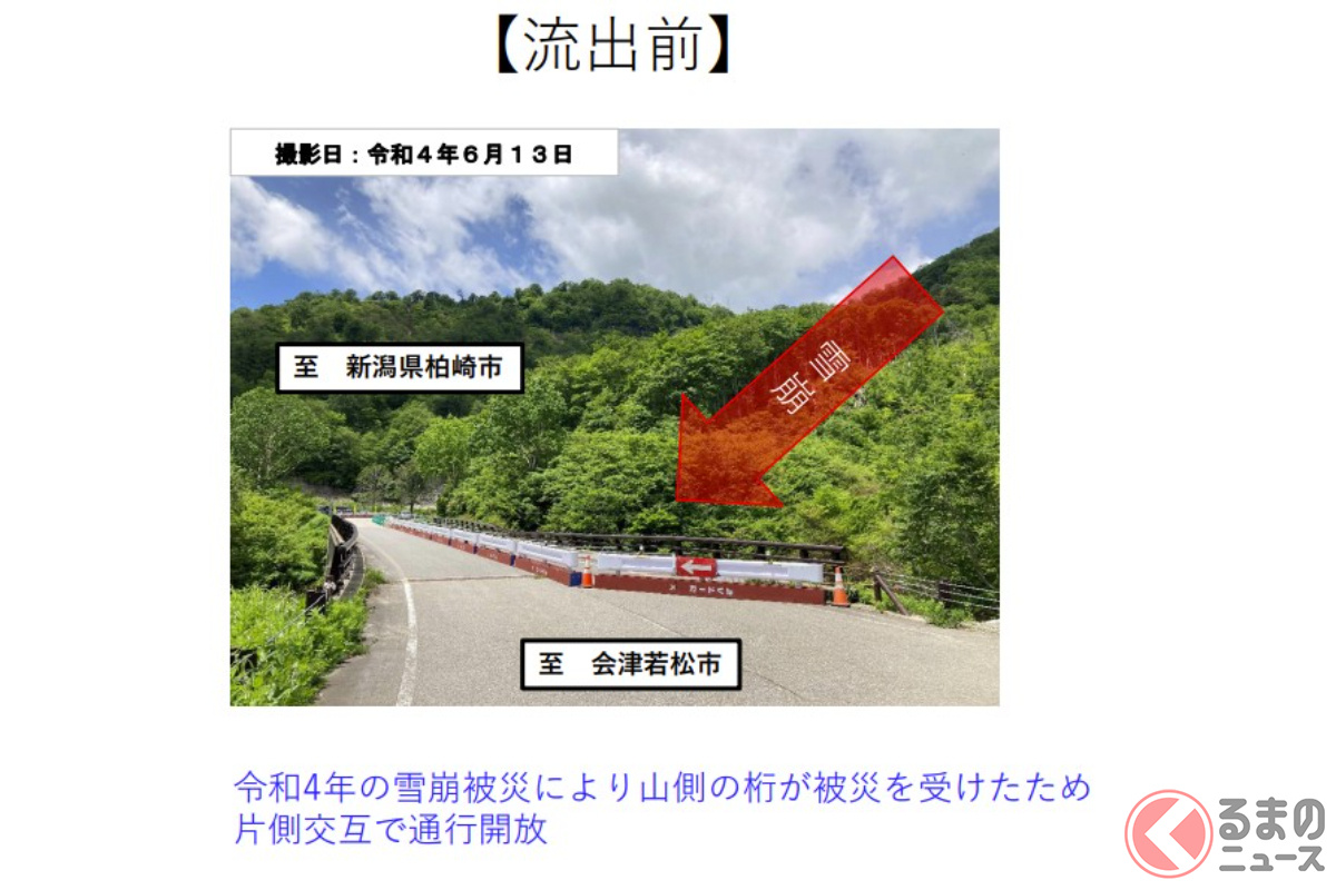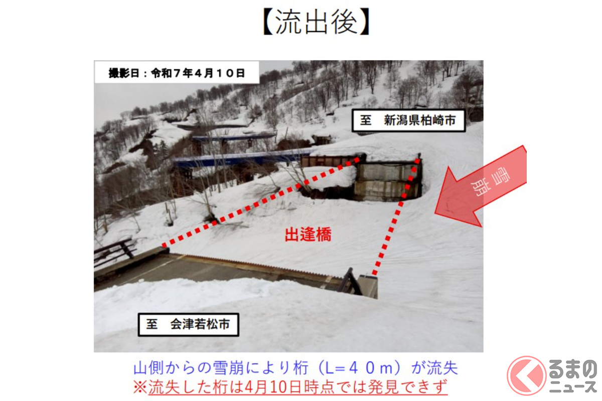 福島県の土木部は2025年4月11日、只見町の国道252号「出逢橋」について、流失して通行不能になったと発表しました。