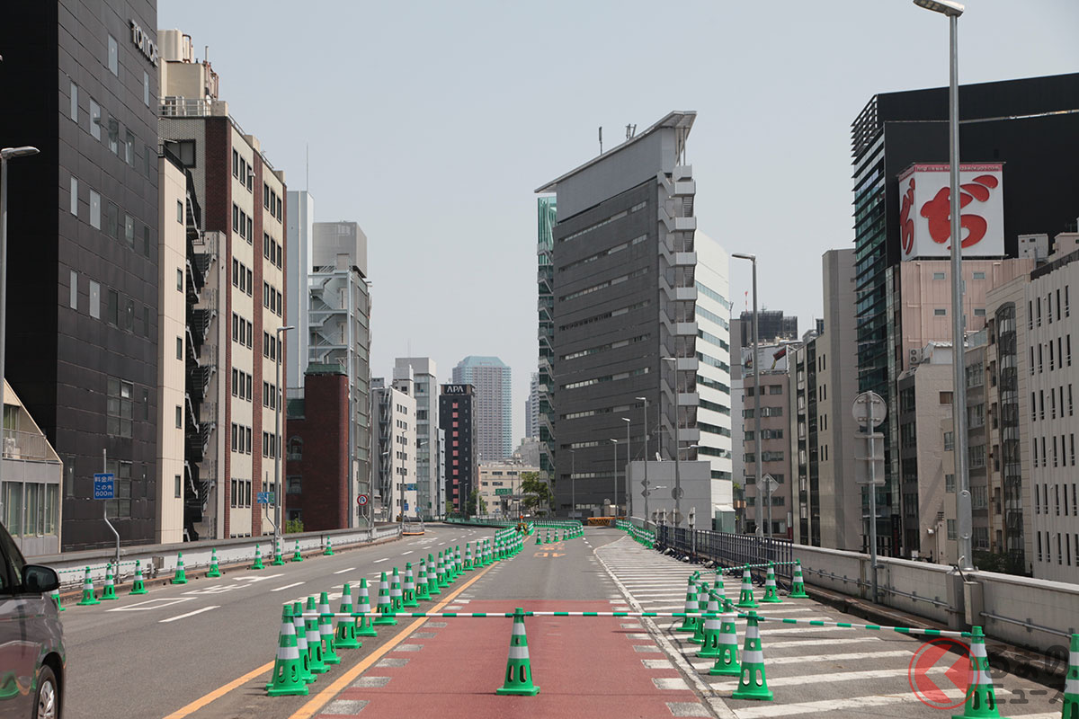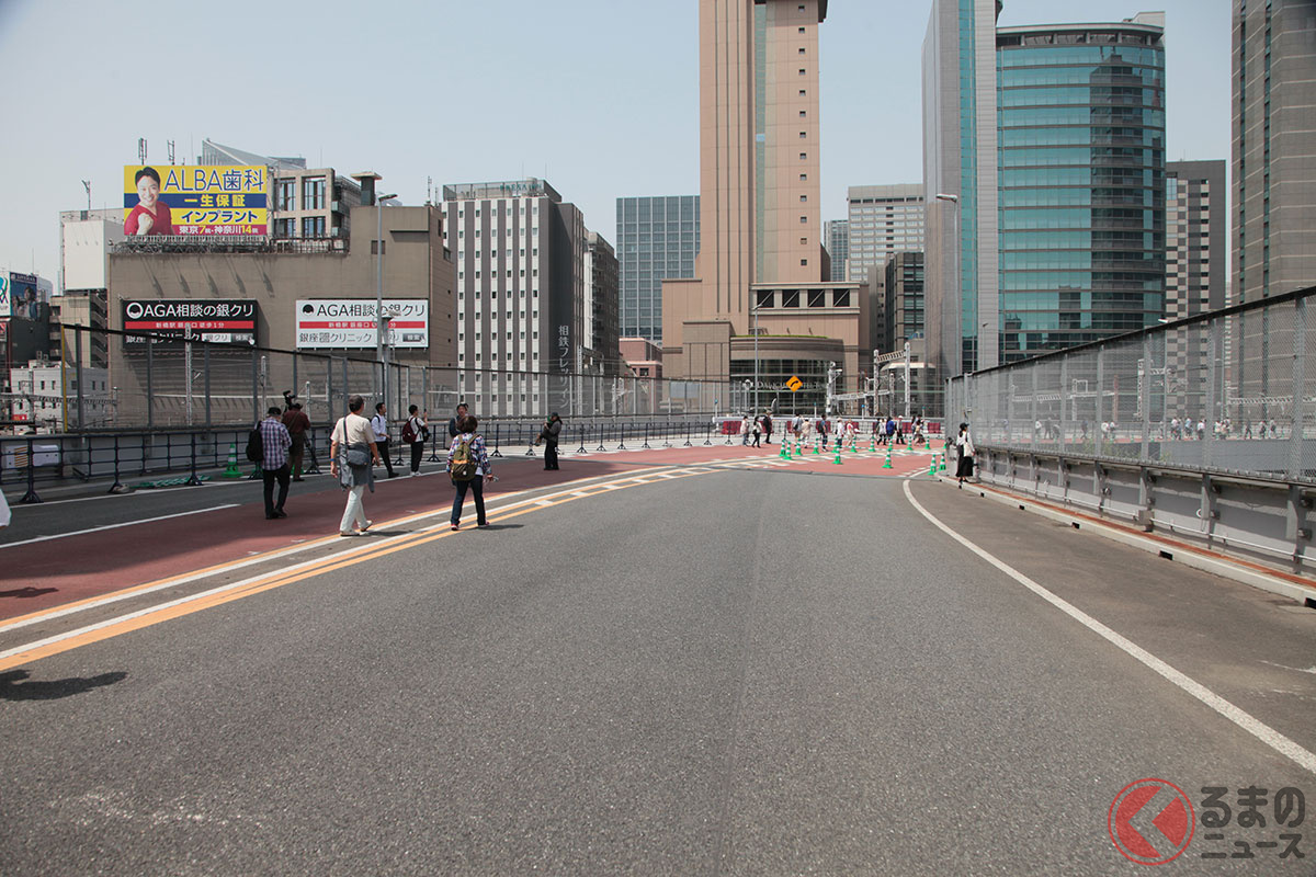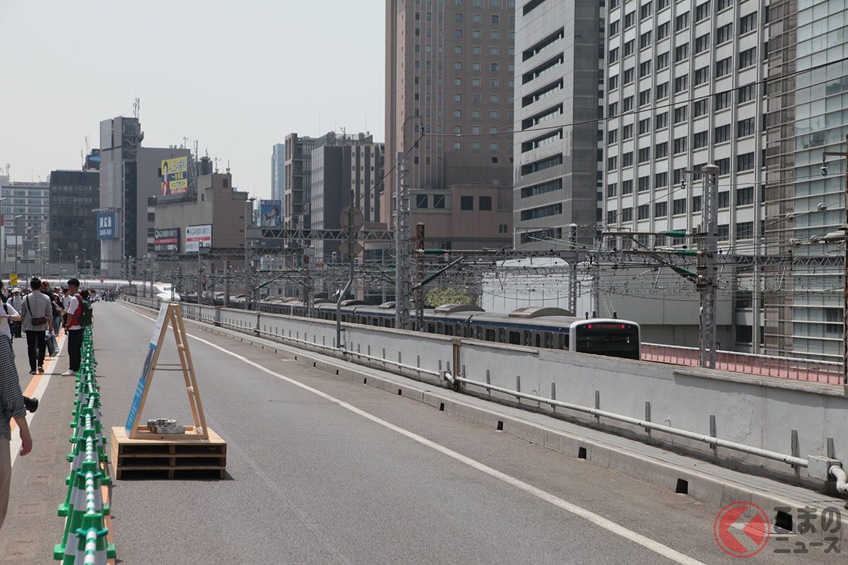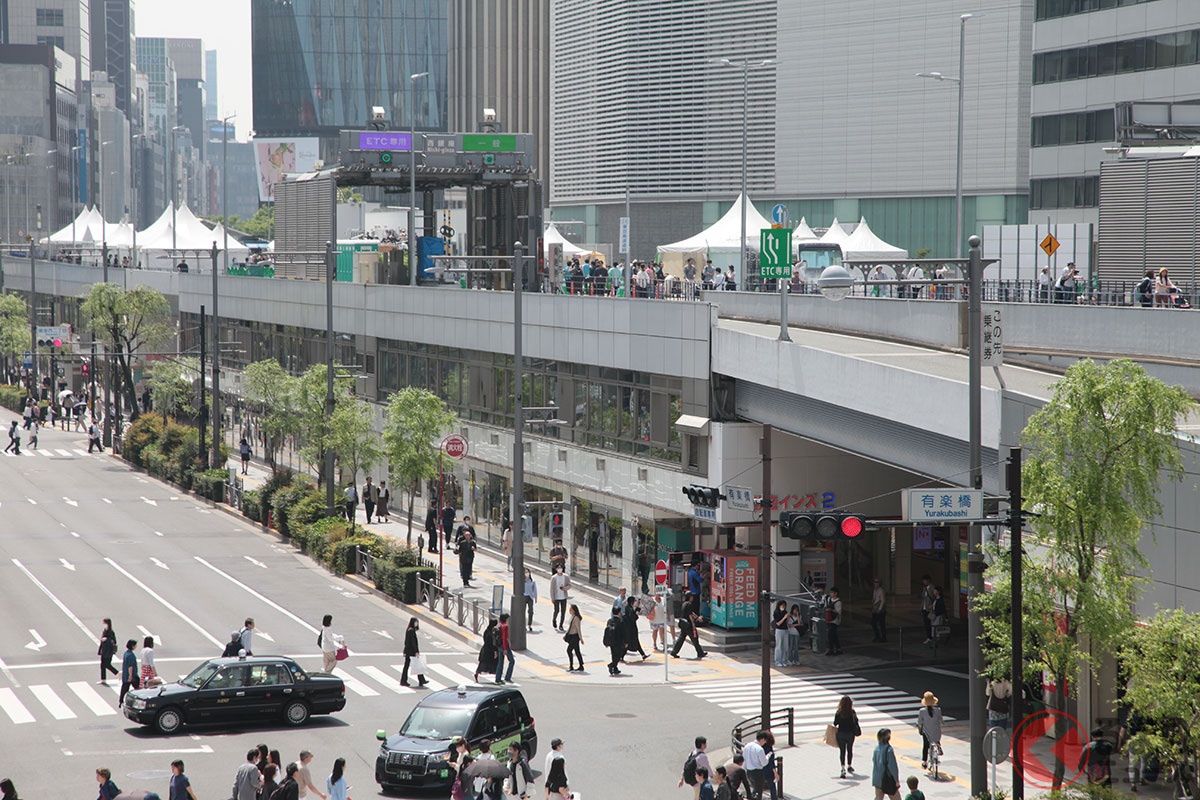 銀座ビル街を駆け抜けた“無料高速”「KK線」 正式廃止後はどんな姿に? ど迫力「新幹線ビュー」&「繁華街一望」の“スペシャルスポット”に! ウォーキングで見えた姿は?