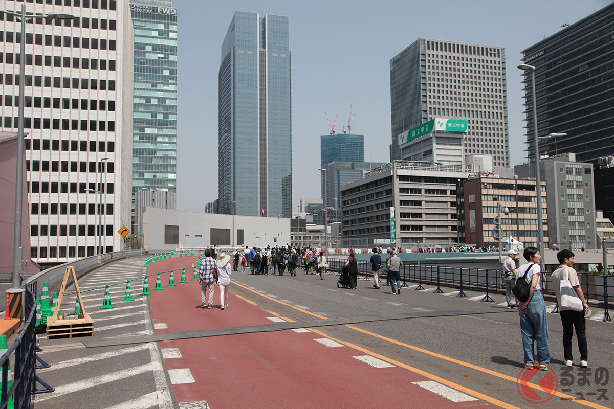 銀座を抜けていく都心の高速道路、東京高速道路が廃止されました。今後、高速道路だった区間は10年以上をかけ、歩行者を中心とした空間に生まれ変わる予定です。その将来の姿を示したイベント「Roof Park Fes & Walk」に参加し、歩いてみました。
