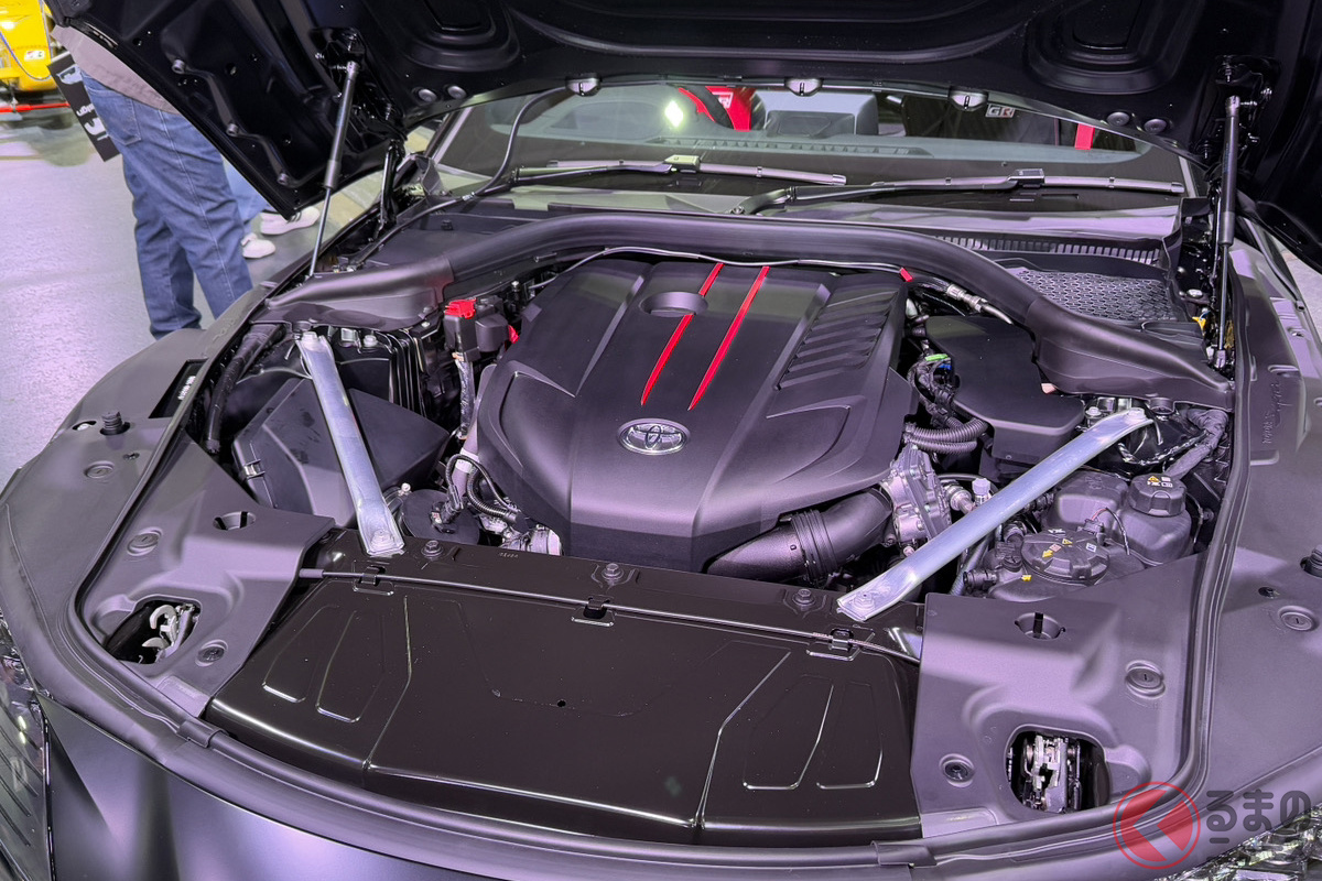 6速MTのみ! トヨタ新「2ドアスポーツカー」登場! 超パワフルな「直6ターボエンジン」搭載したストイック仕様! 鮮烈レッドの“豪華内装”も魅力の「スープラ A90 Final Edition」実車展示!