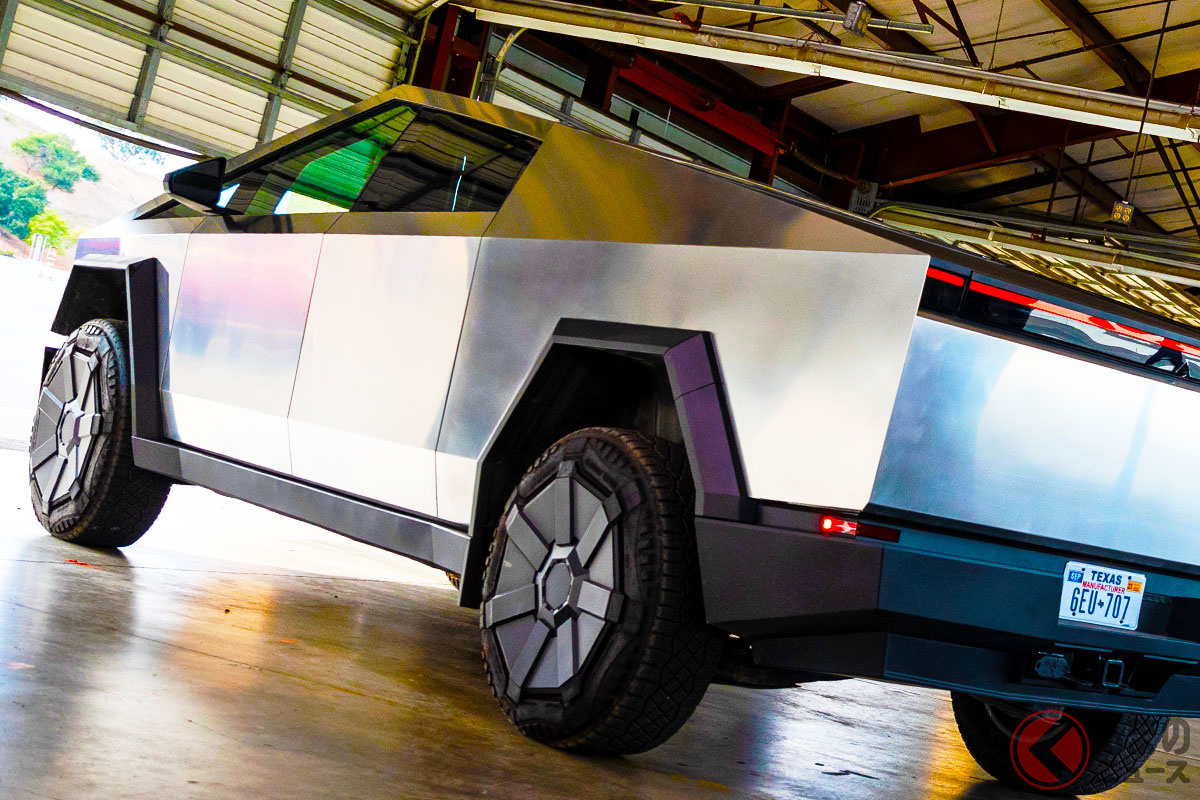 日本国内で「テスラ・サイバートラック」のレンタル開始! 全長5.7mの「“超巨大”ピックアップ」ついに登場! 斬新すぎる「カクカクデザイン」マシンの活用方法とは!