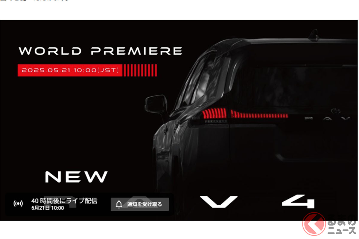 トヨタは2025年5月19日、公式SNSなどで、新型「RAV4」のティザー画像を初公開しました。