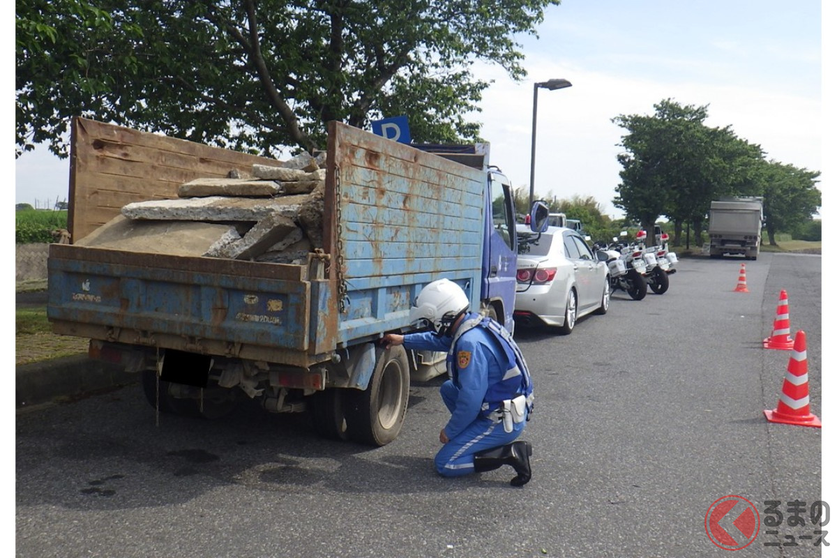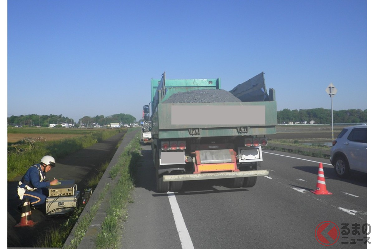 大迷惑な“重量オーバー”トラックを「一斉検挙」! 荷台かさ上げ“過積載仕様”には「クルマを直しなさい!」命令も!? 違法産廃トラックの「過積載取り締まり」を実施 茨城