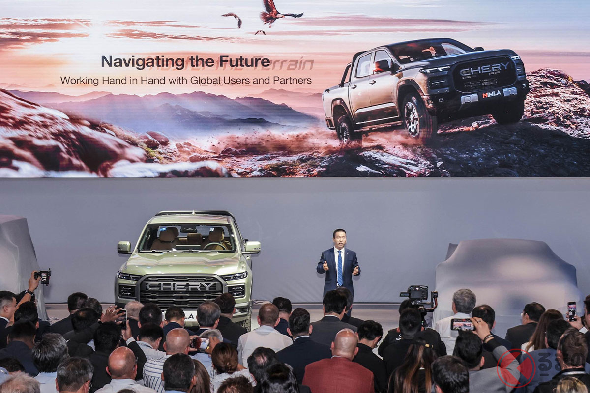 トヨタ「タンドラ」そっくり!? ド迫力の「新型ヒムラ」は“巨大グリル”がスゴイ! 自家用にも使える「豪華トラック」チェリーから中国で発表!