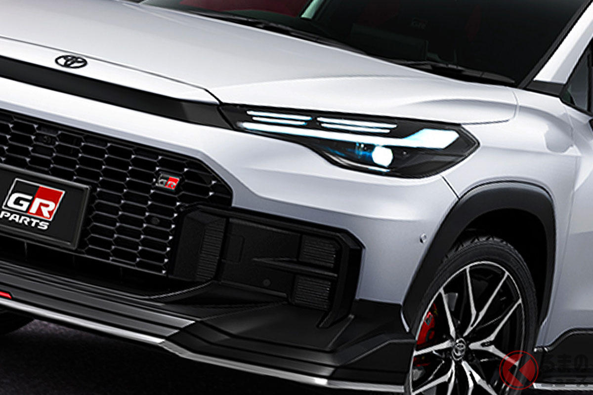 トヨタ新型「カローラクロス」発表! まるで「白黒パンダ」カローラな“GR”専用カスタム登場! ド迫力の“真っ黒フェイス”採用した「GRパーツ仕様」とは!