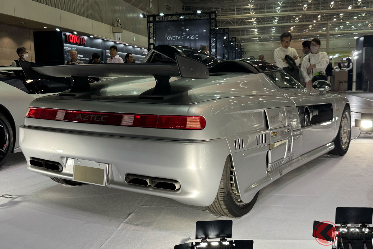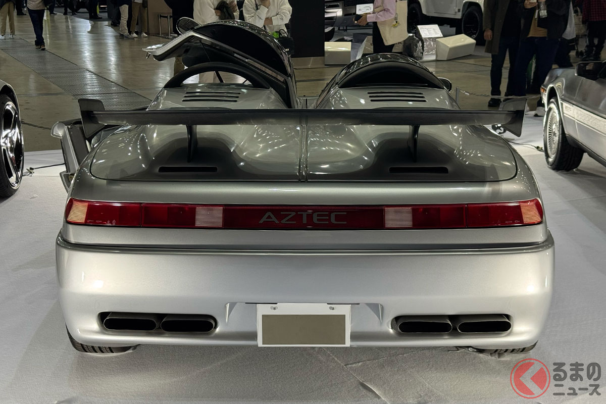 斬新すぎる「2人乗り“スポーツカー”」公開に反響多数!? 「凄い」「圧巻…」 縦・横ドア「キャノピーボディ」に2.2Lターボ&高性能4WD搭載! 公道走行OKな「アズテック」とは