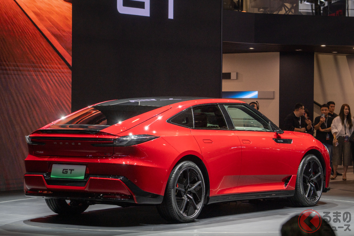ホンダ「新型4ドアセダン」発表! 新たな「Hマーク」に流麗“ファストバック”ボディがカッコイイ! リア駆動×450馬力超え“高性能ユニット”も搭載の「ホンダGT」 中国モデルとは