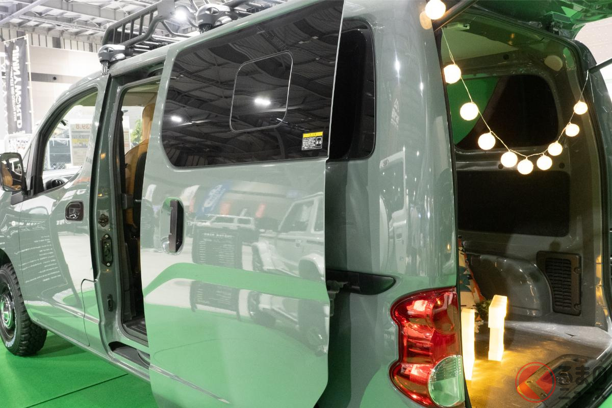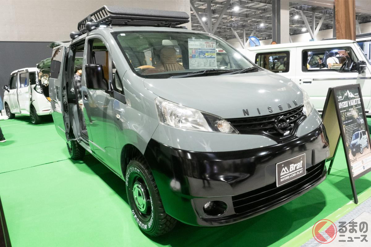 日産「コンパクト“SUV”ミニバン」!? “239万円”の「バネット“SUV”」公開! 全長4.4m級ボディ&スライドドア採用のタフ顔「NV200 Brat仕様」登場