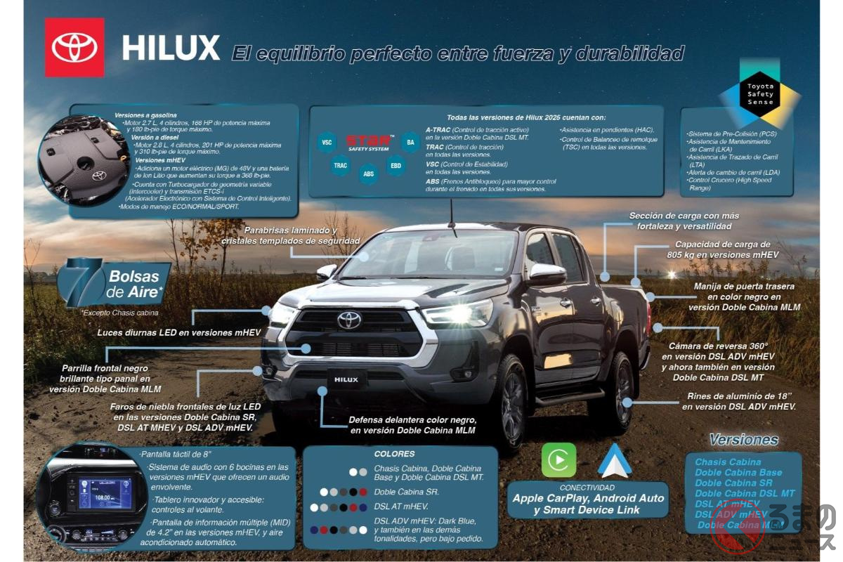 トヨタのメキシコ法人は2025年4月28日、ピックアップトラック「ハイラックス」の新たな2025年モデルの特徴を発表。反響が集まっています。