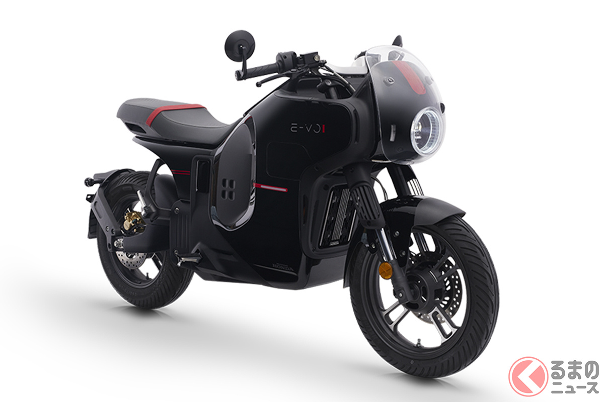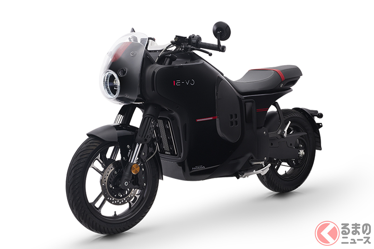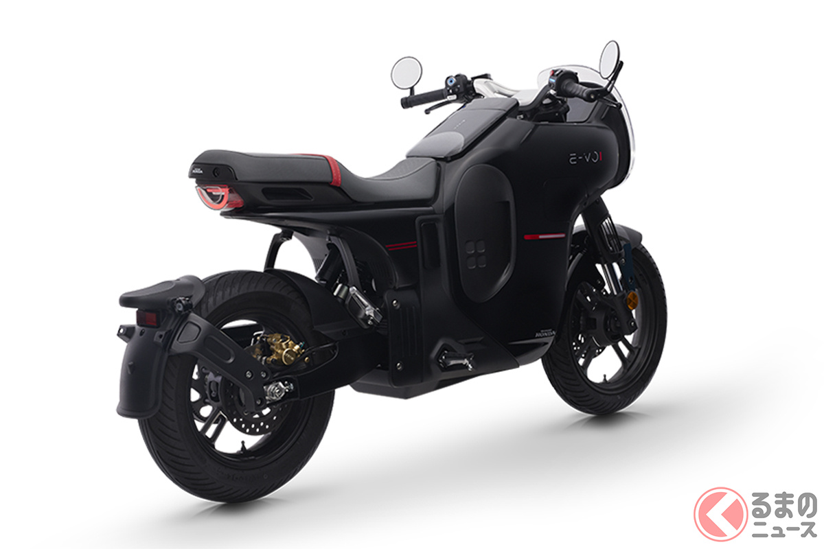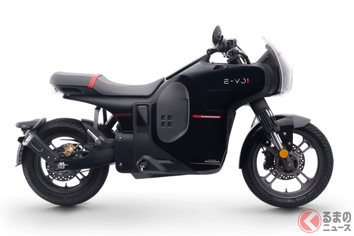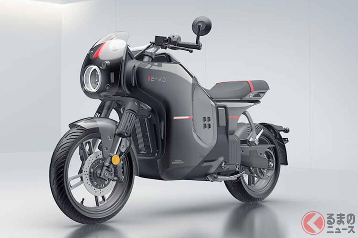 ホンダ新型「カフェレーサー」初公開! 斬新「ブーストモード」&軽量「アルミスイングアーム」採用でめちゃ楽しそう! ドラレコを標準装備したバイク「E-VO」が中国に登場!