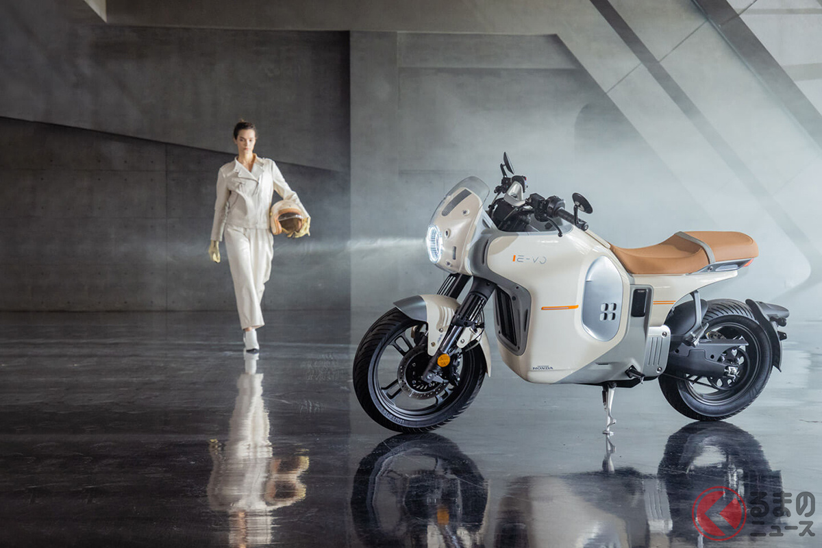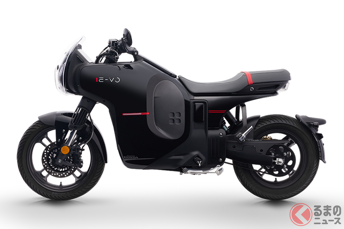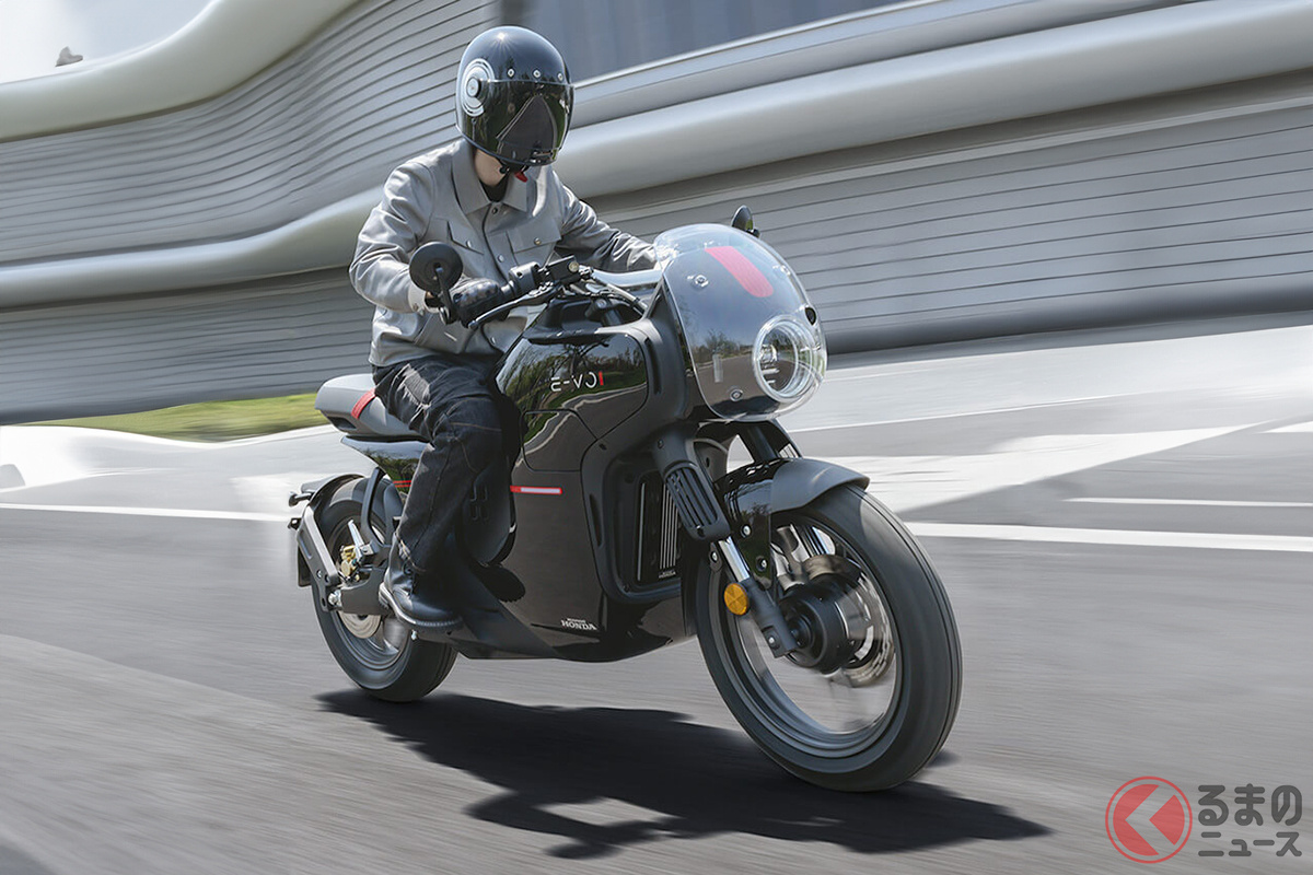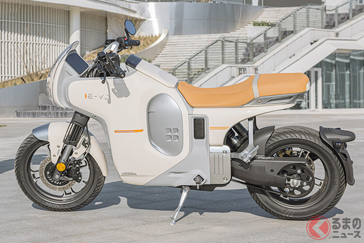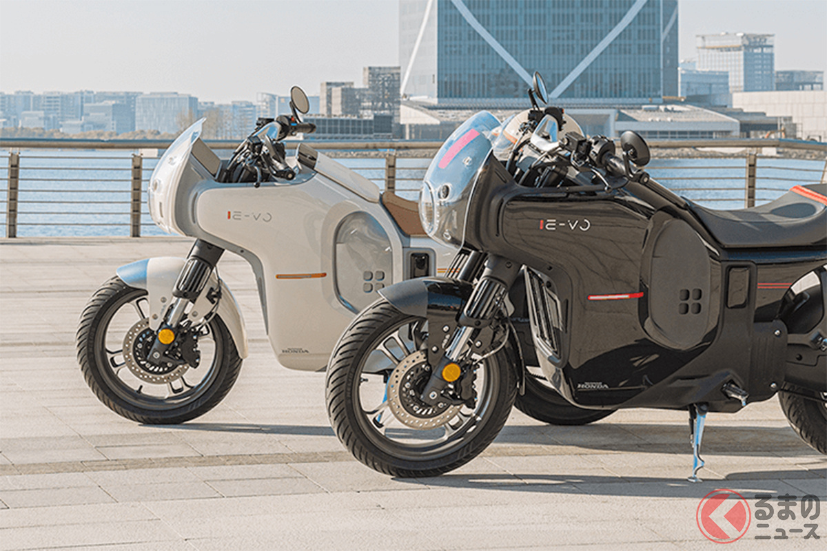 ホンダ新型「カフェレーサー」初公開! 斬新「ブーストモード」&軽量「アルミスイングアーム」採用でめちゃ楽しそう! ドラレコを標準装備したバイク「E-VO」が中国に登場!