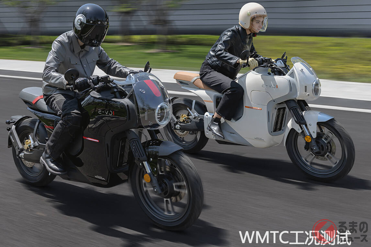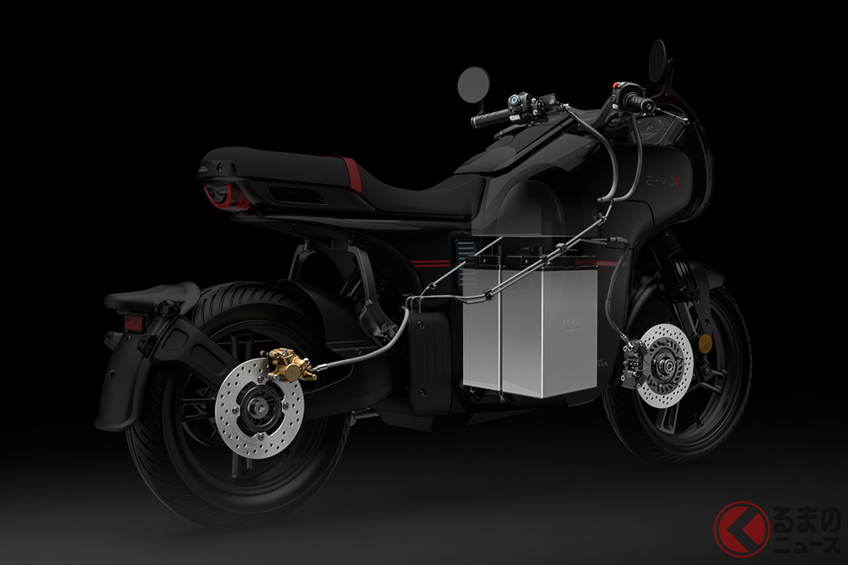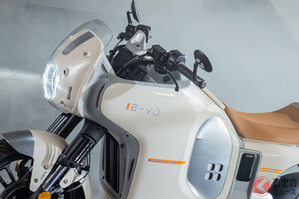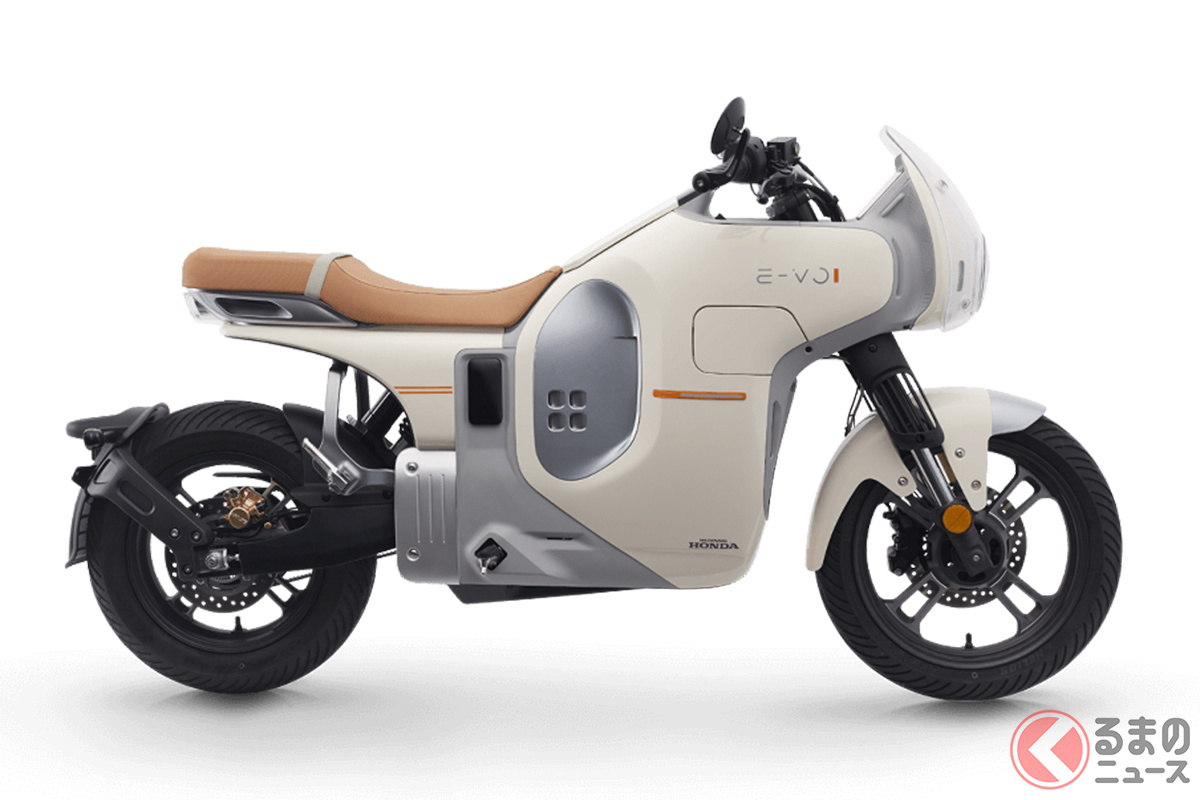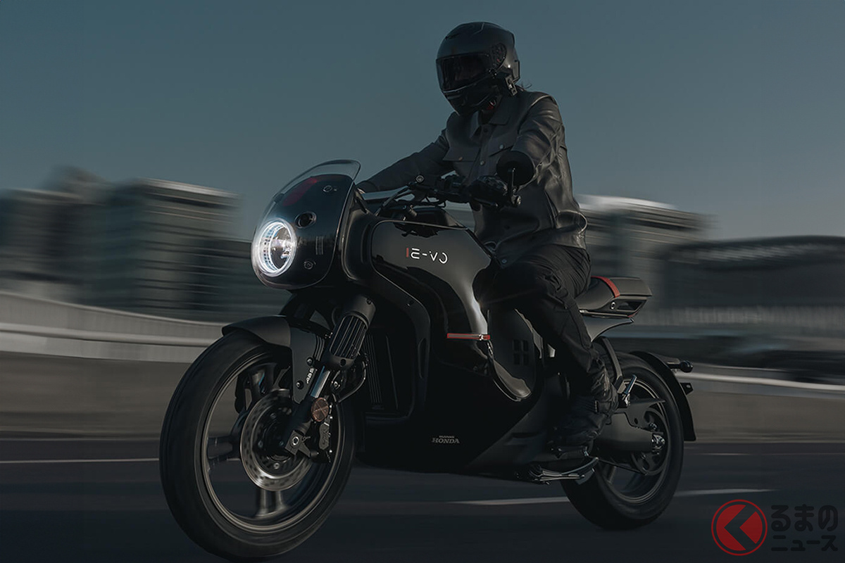 ホンダ新型「カフェレーサー」初公開! 斬新「ブーストモード」&軽量「アルミスイングアーム」採用でめちゃ楽しそう! ドラレコを標準装備したバイク「E-VO」が中国に登場!
