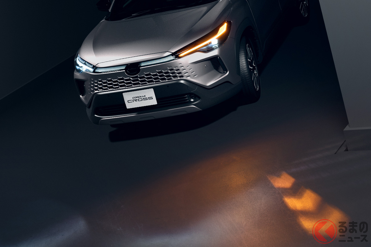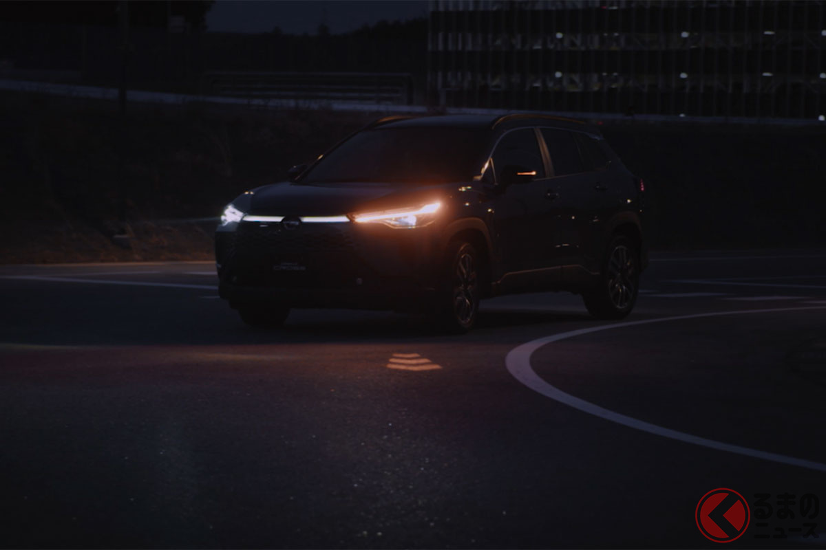 「斬新“矢印”ヘッドライト」日本初採用! 路面に「>>>」の光が!? トヨタ「カローラクロス」に搭載された新機能とは