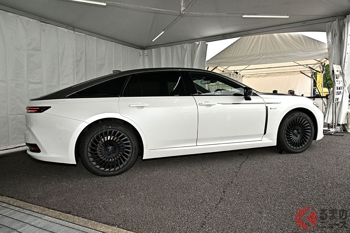 トヨタが「“新”クラウンセダン」を初公開! 全長5m級“正統派セダン”の「斬新・白銀2トーン仕様」が凄い! 専用豪華内装で「所有感」満たす特別仕様車「THE 70th」をS耐で披露