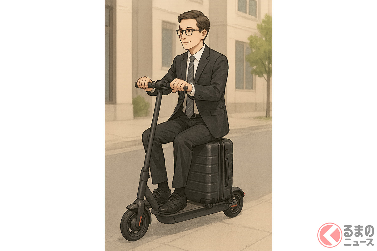 【危険】スーツケースに座って電動キックボードを運転!? SNSでは様々な反応が…!? どんな違反になる? 元警察官が解説