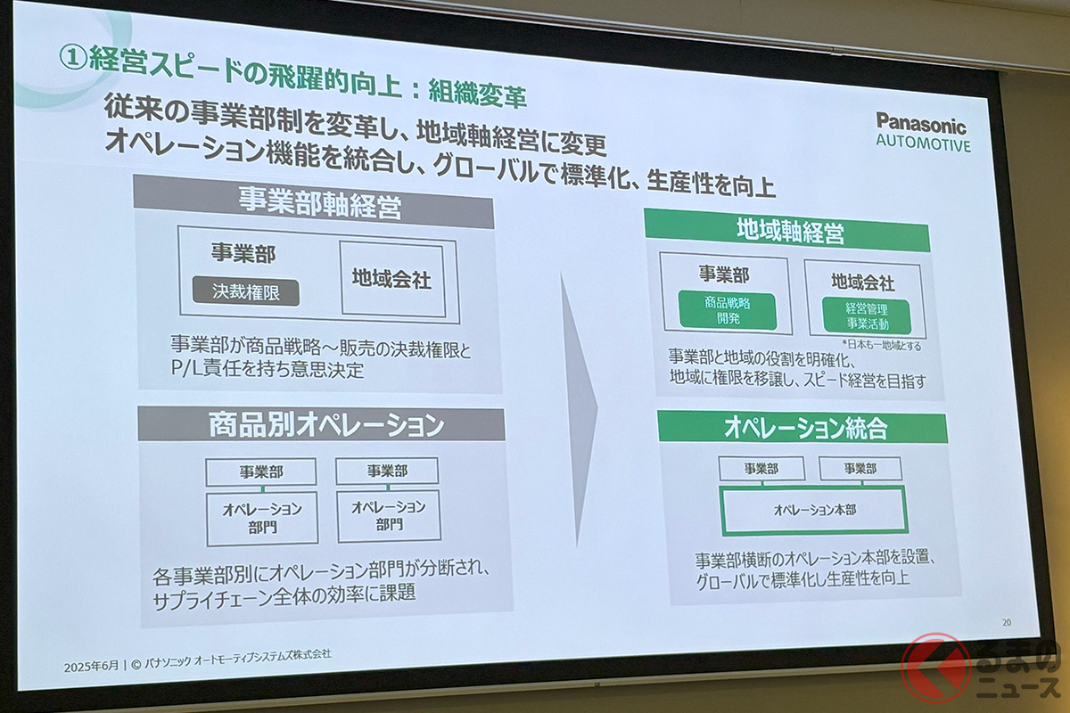 自動車業界が100年に1度の大変革期を迎える中、パナソニックオートモーティブシステムズが掲げる新たなビジョンと戦略について、メディア向けの説明会がおこなわれました。同社では、自動車の「走る・曲がる・止まる」という基本性能を超えた新たな価値創造に向けてさまざまな取り組みがおこなわれています。