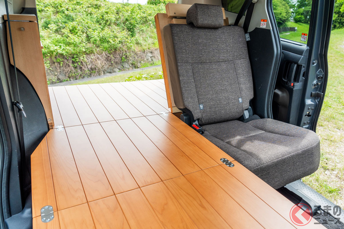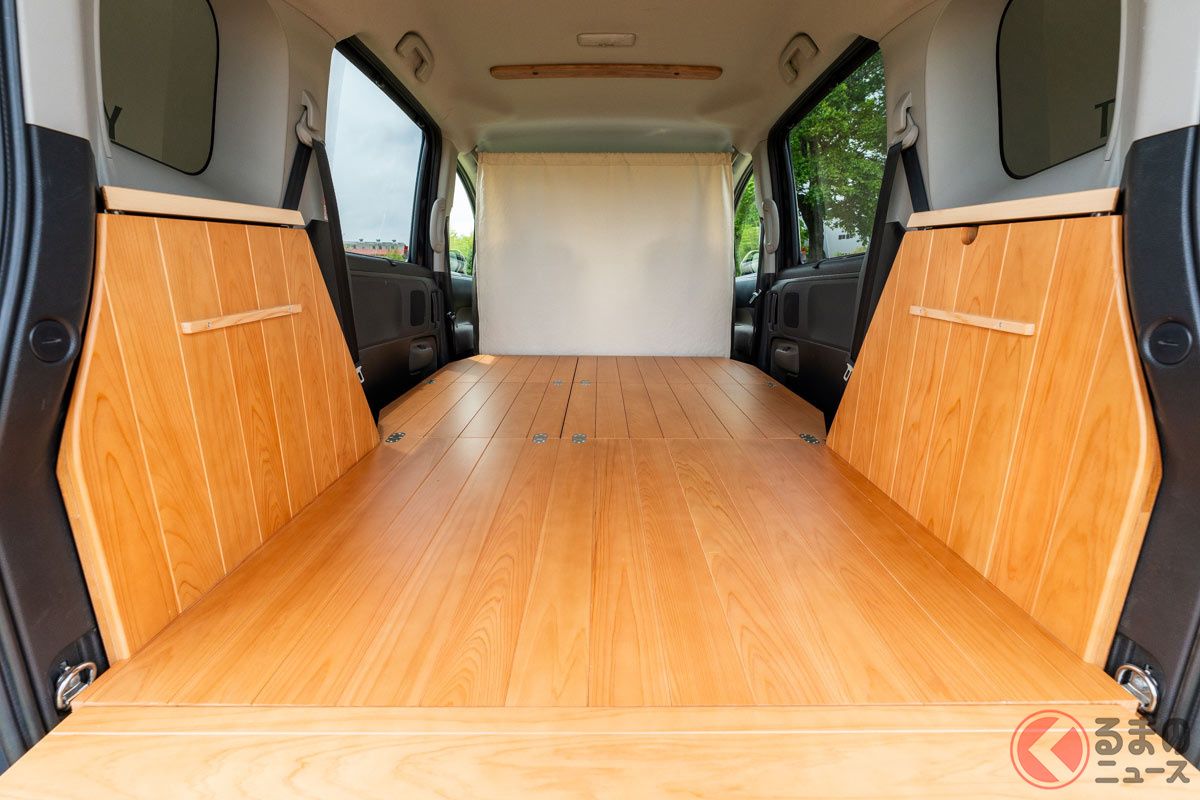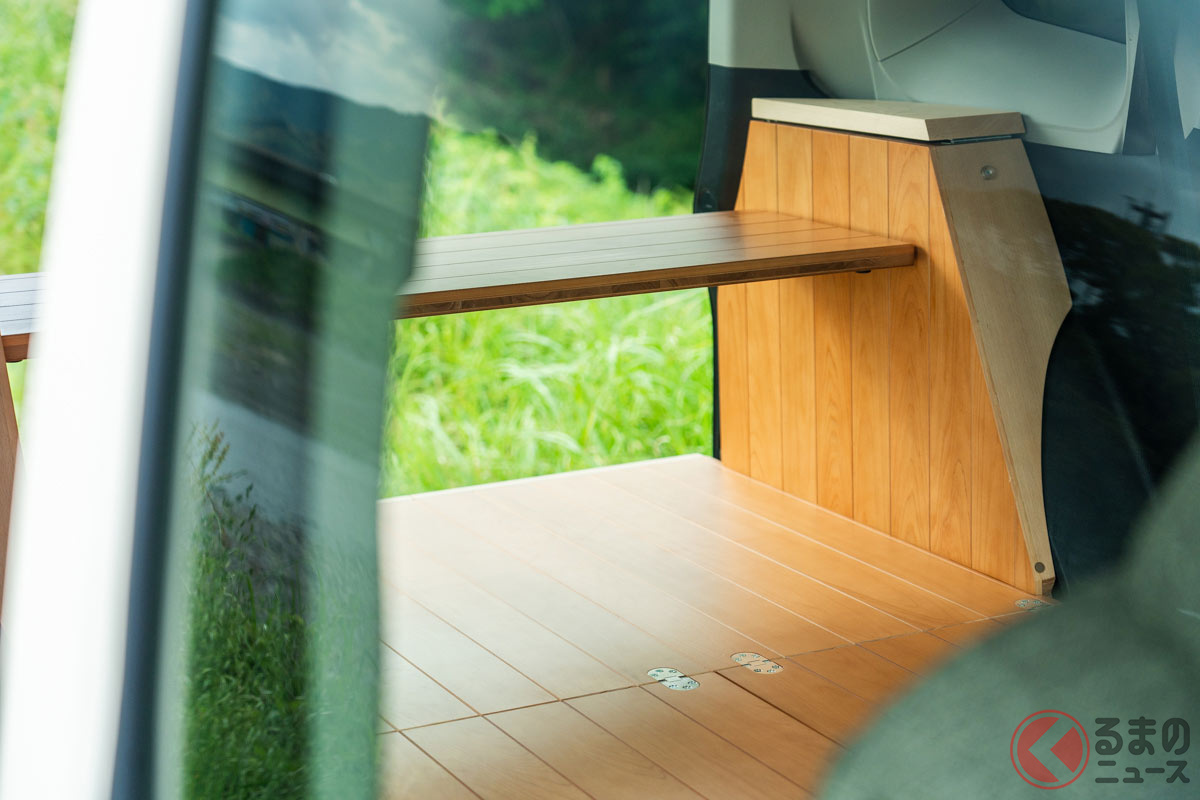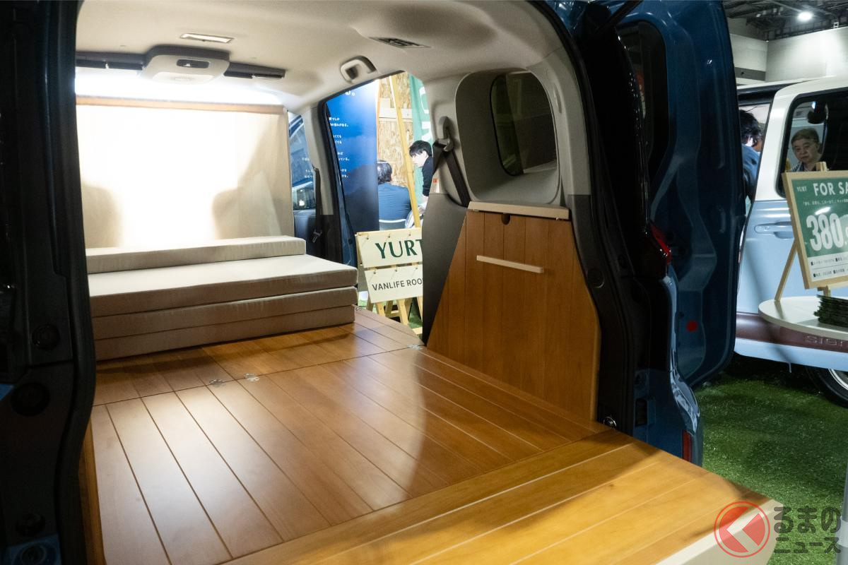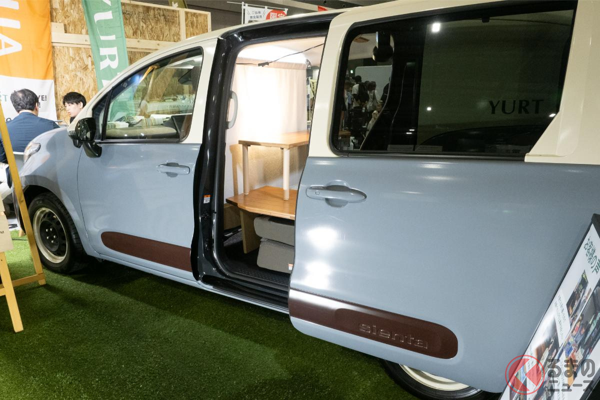 “超ウッド内装”のトヨタ「シエンタ」! 5人乗りに即“変身する”「車中泊仕様」! 約59万円で大変身の「YURT VANLIFE ROOMKIT」登場