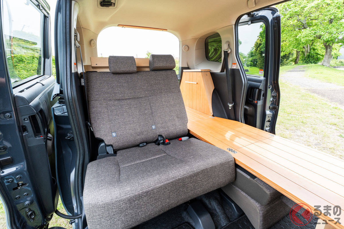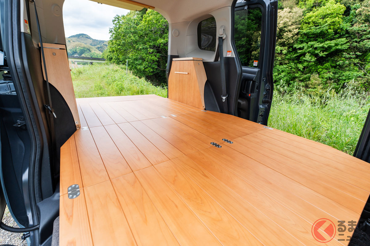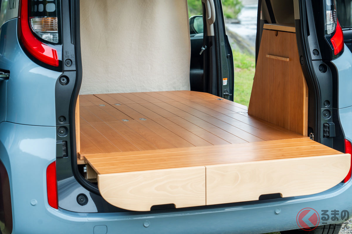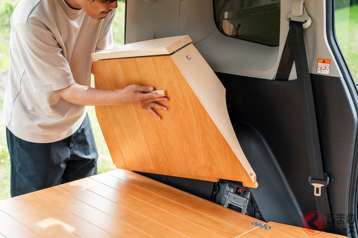 “超ウッド内装”のトヨタ「シエンタ」! 5人乗りに即“変身する”「車中泊仕様」! 約59万円で大変身の「YURT VANLIFE ROOMKIT」登場