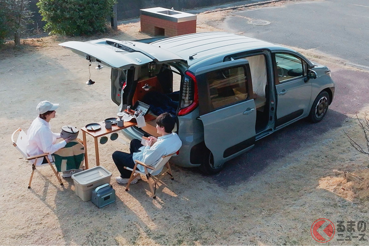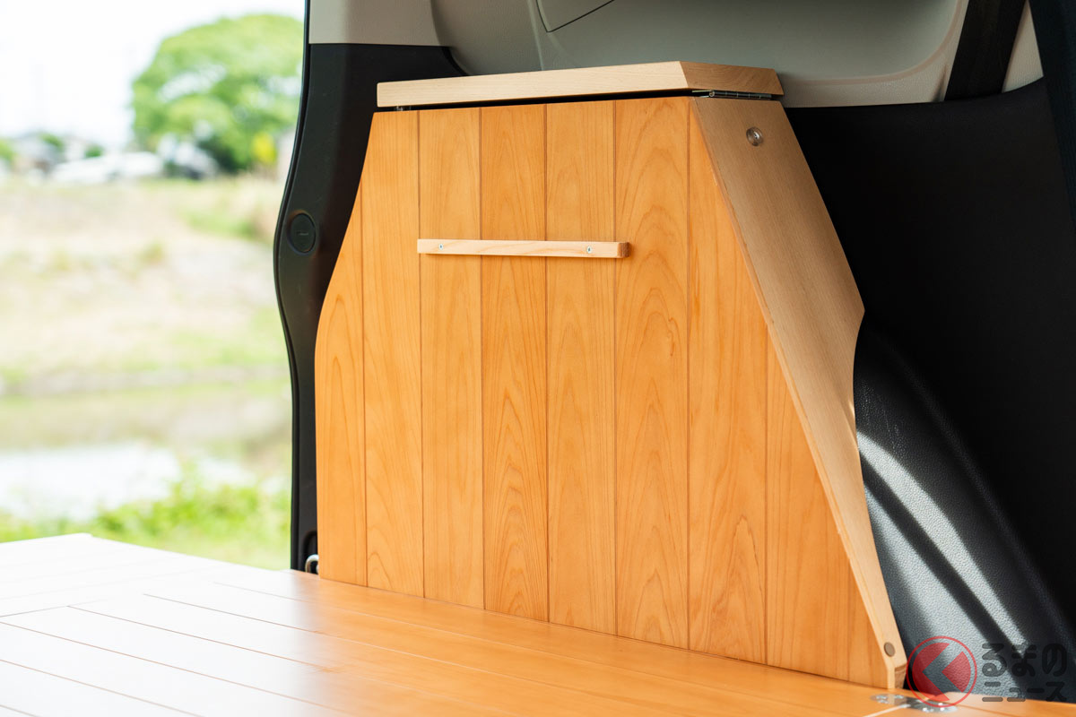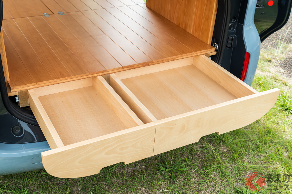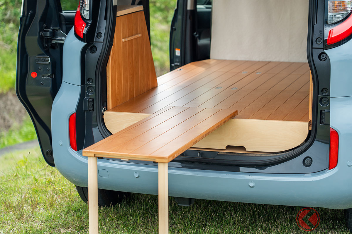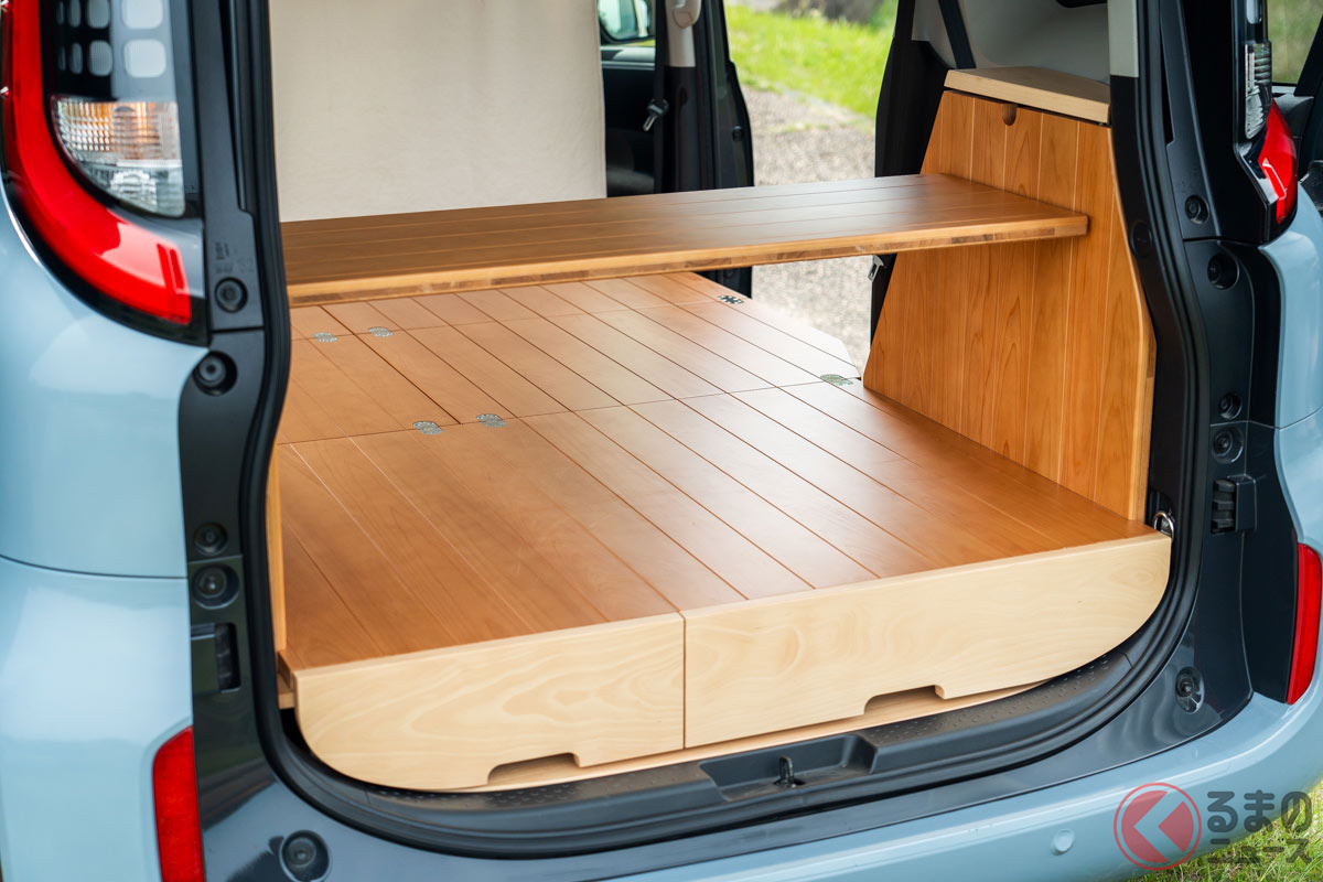 “超ウッド内装”のトヨタ「シエンタ」! 5人乗りに即“変身する”「車中泊仕様」! 約59万円で大変身の「YURT VANLIFE ROOMKIT」登場