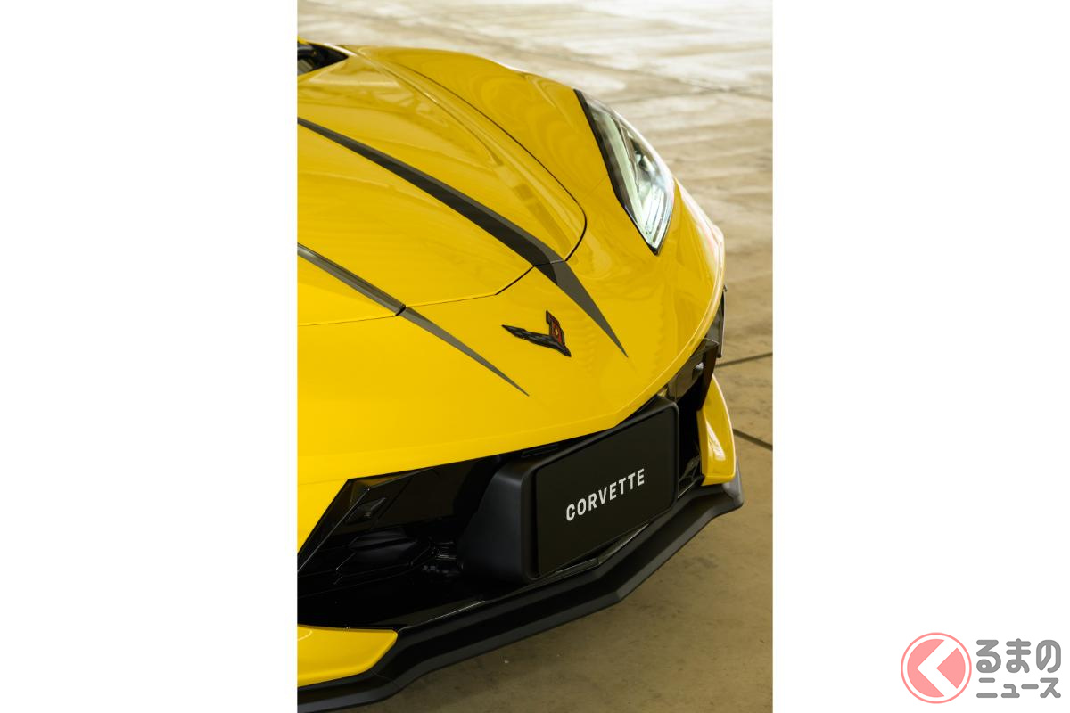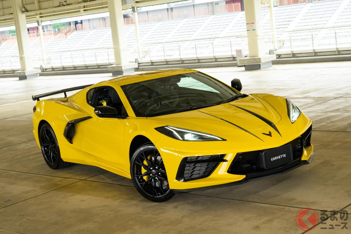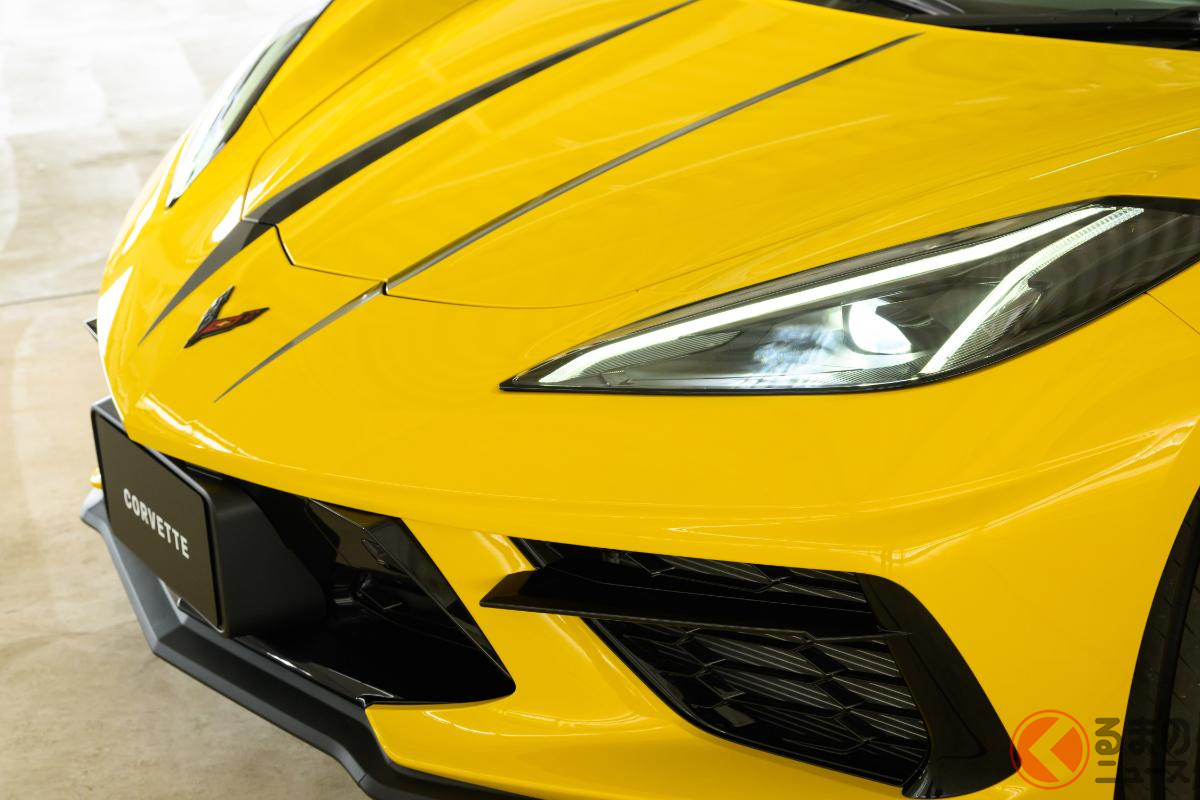 日本専用の「“新”スーパーカー」発表! 500馬力超えの「V8」搭載&全長4.6m級ボディ採用! 30年ぶり復活の「イエロー」まとった「シボレー コルベット」登場