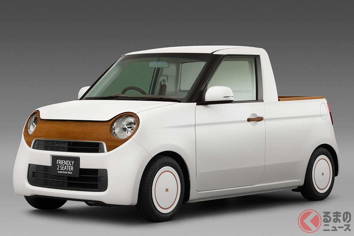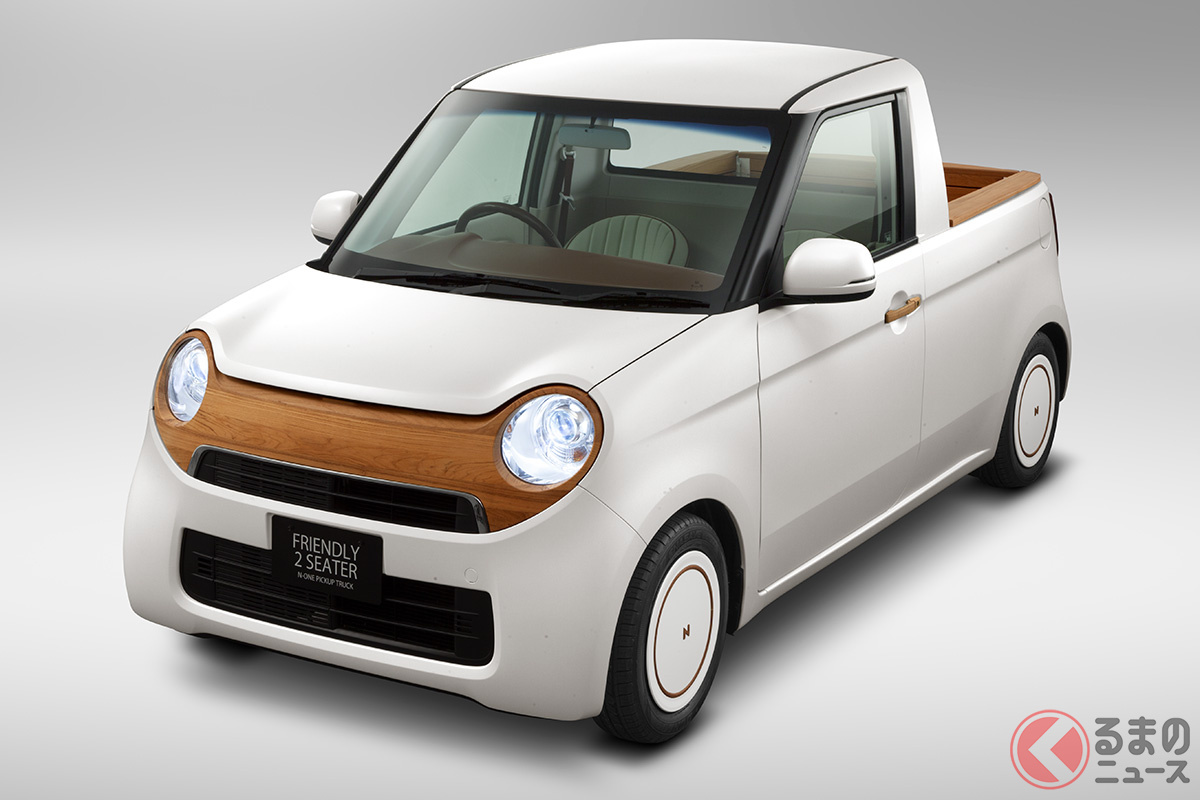 ホンダの斬新「“丸目”軽トラ」に反響あり! 「絶対いい!」「爆売れ確実!?」と称賛の声も! 快適2人乗りシート×便利な荷台がスゴかった! 「N-ONE ピックアップトラック」とは!