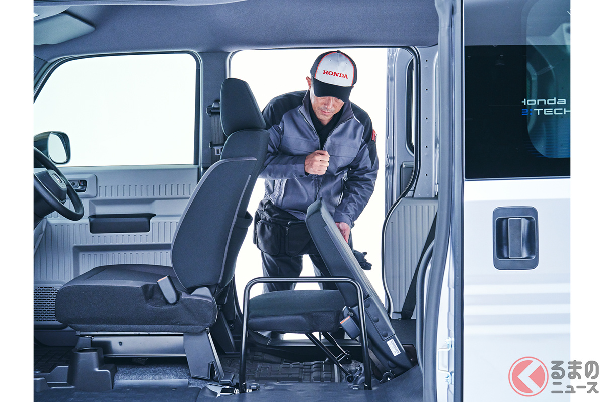 月々「3.5万円」で乗れる! ホンダの斬新「2人乗り“軽バン”」がスゴい! 奇抜すぎる「タンデムシート」完備の「N-VANイー」どんなクルマ?