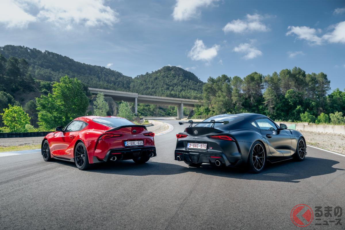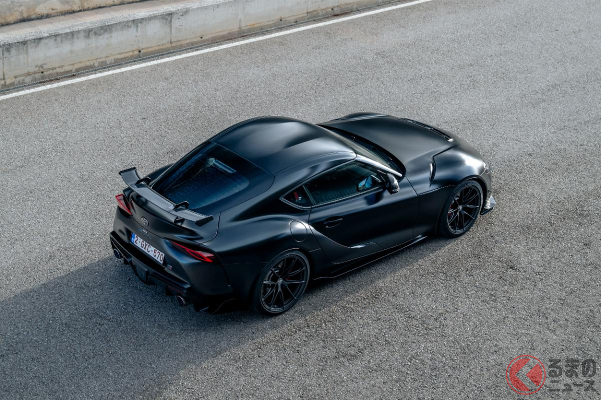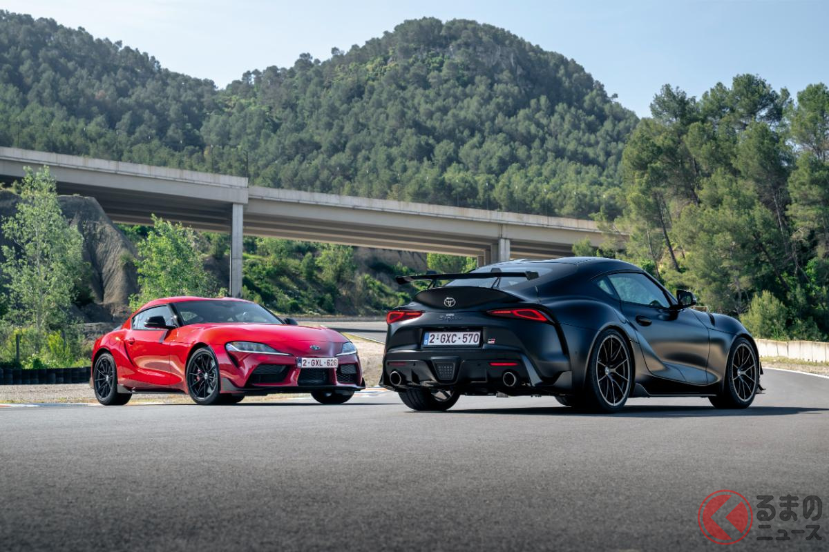 新車約2400万円! トヨタ新「“FR”スポーツカー」発表! 大型リアウイング&440馬力超え「直6」採用! 6速MTのみの「GRスープラ ファイナルエディション&3.0L EVO」仏国に登場