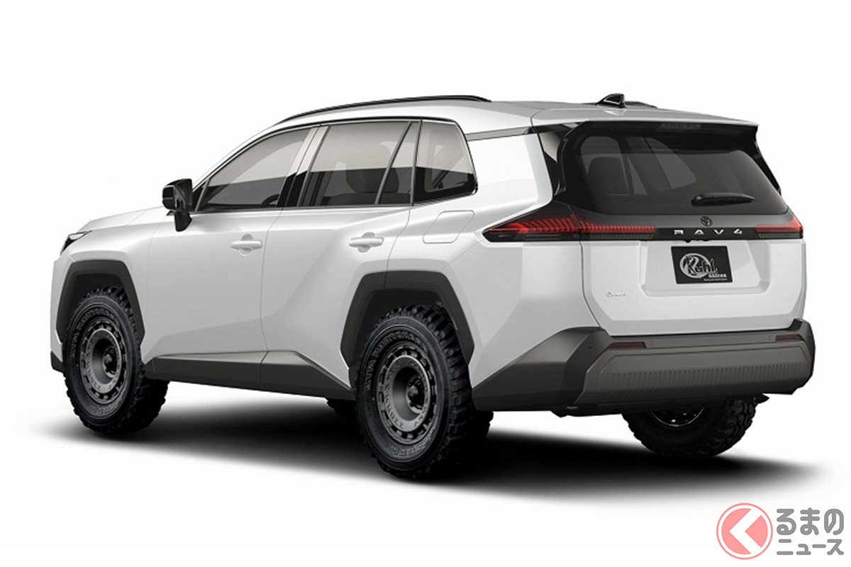 新型「RAV4“超タフ仕様”」公開! “車高アップ”に「ゴツゴツタイヤ&お洒落ホイール」が超カッコイイ! オフロードもヨユーのド迫力マシン! KUHL「CORE」のカスタムパーツ開発へ!