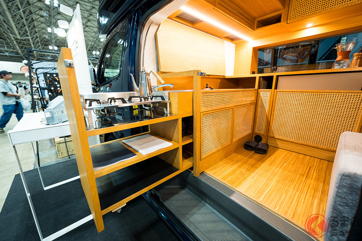 2000万円超えのトヨタ「“4人乗り”ハイエース」!? “高級ホテル”な「ウッド内装」が超ラグジー! 商用バンとは思えないビッグな「van hotel」公開
