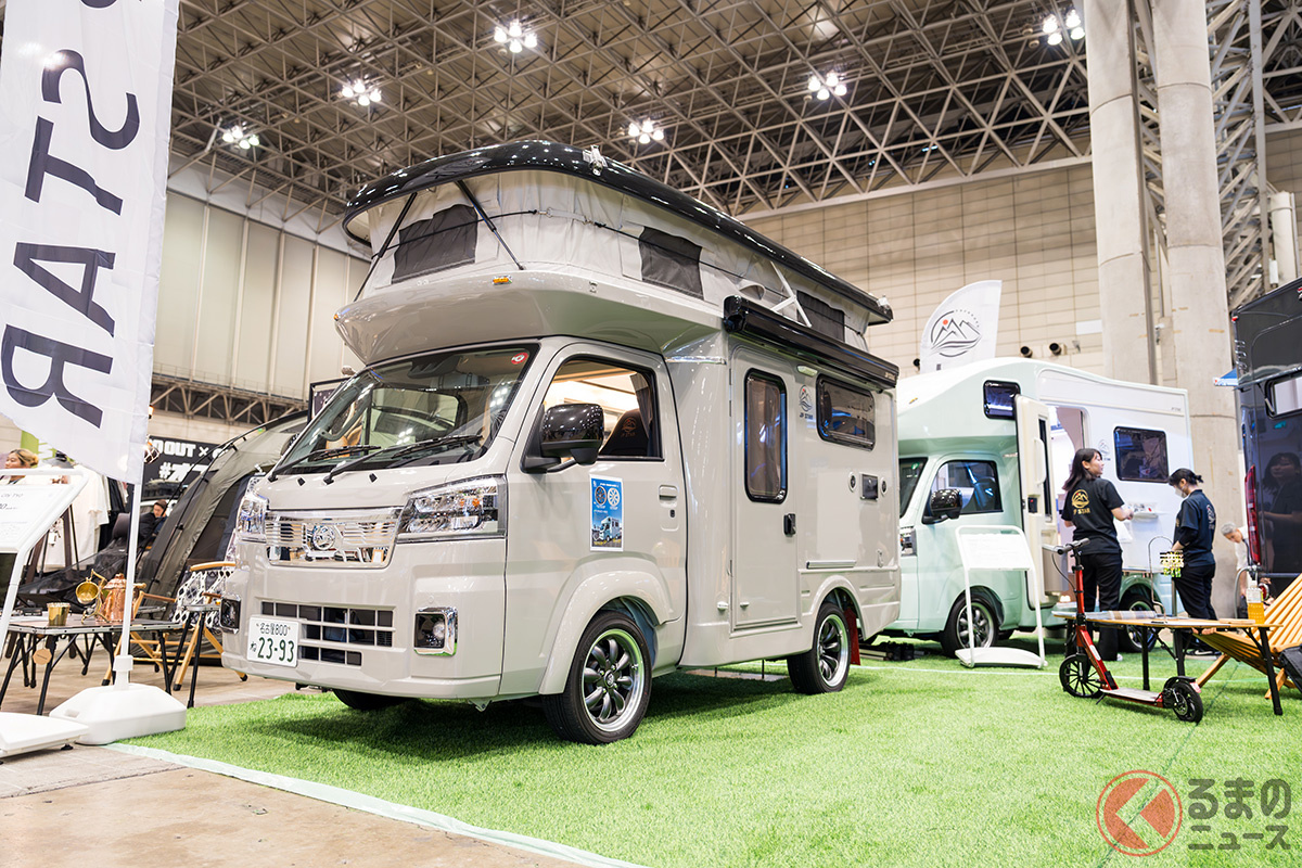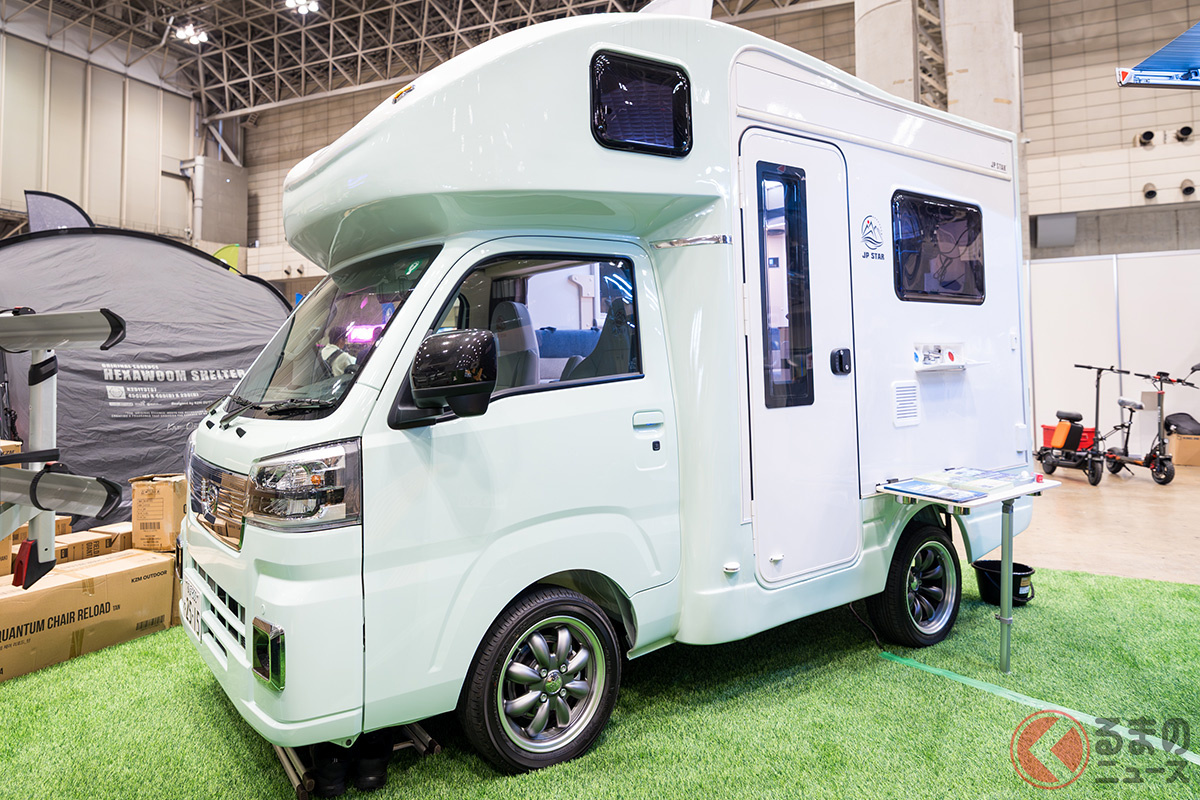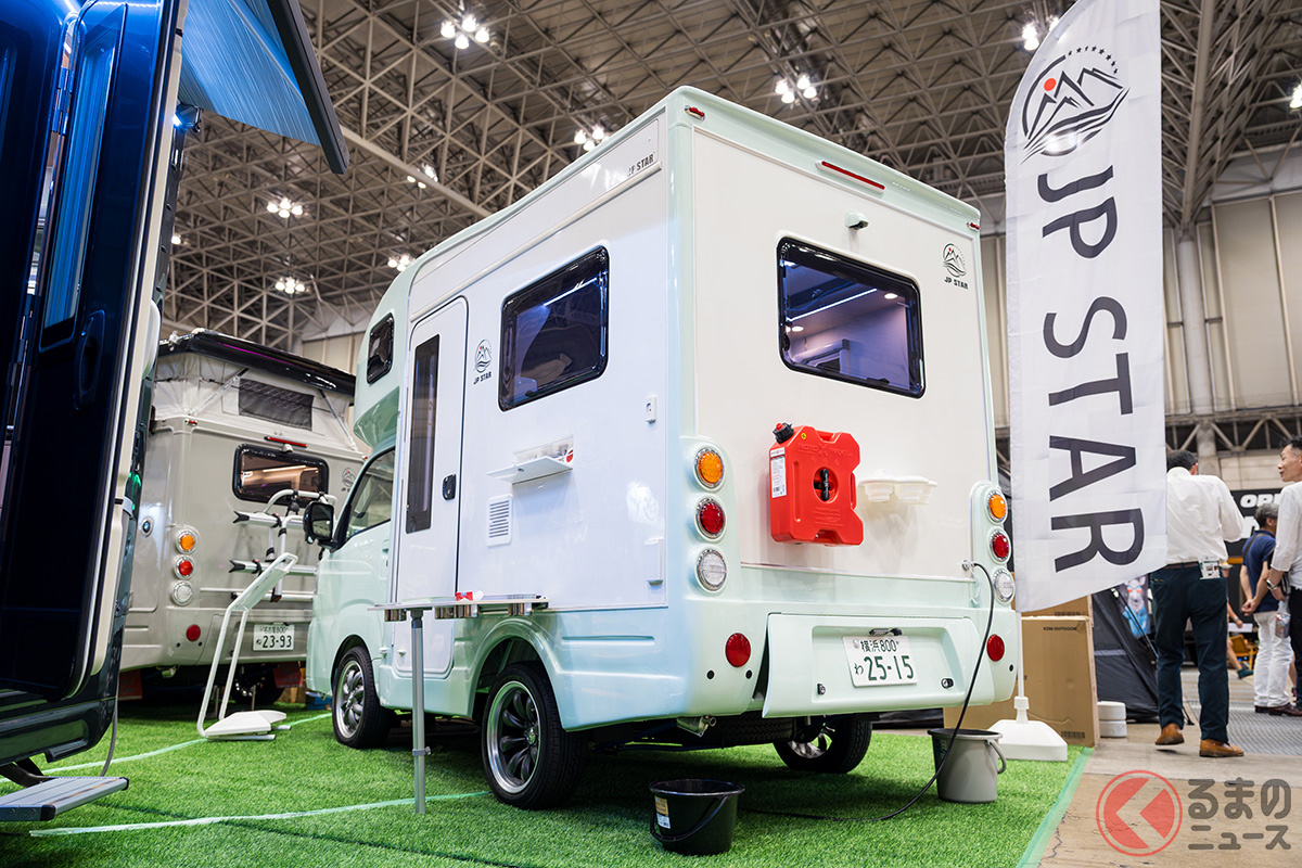 2025年6月27日から3日間開催の「東京アウトドアショー2025」に、JP STARはダイハツの軽トラック「ハイゼット」をベースにしたキャンピングカー2モデルを出展しました。それぞれどのようなクルマなのでしょうか。