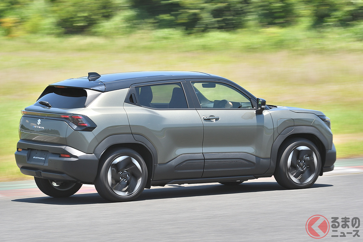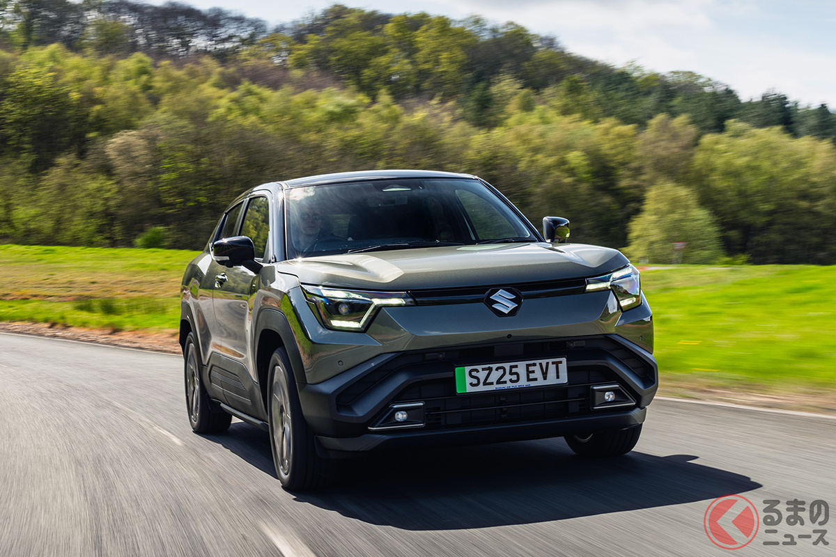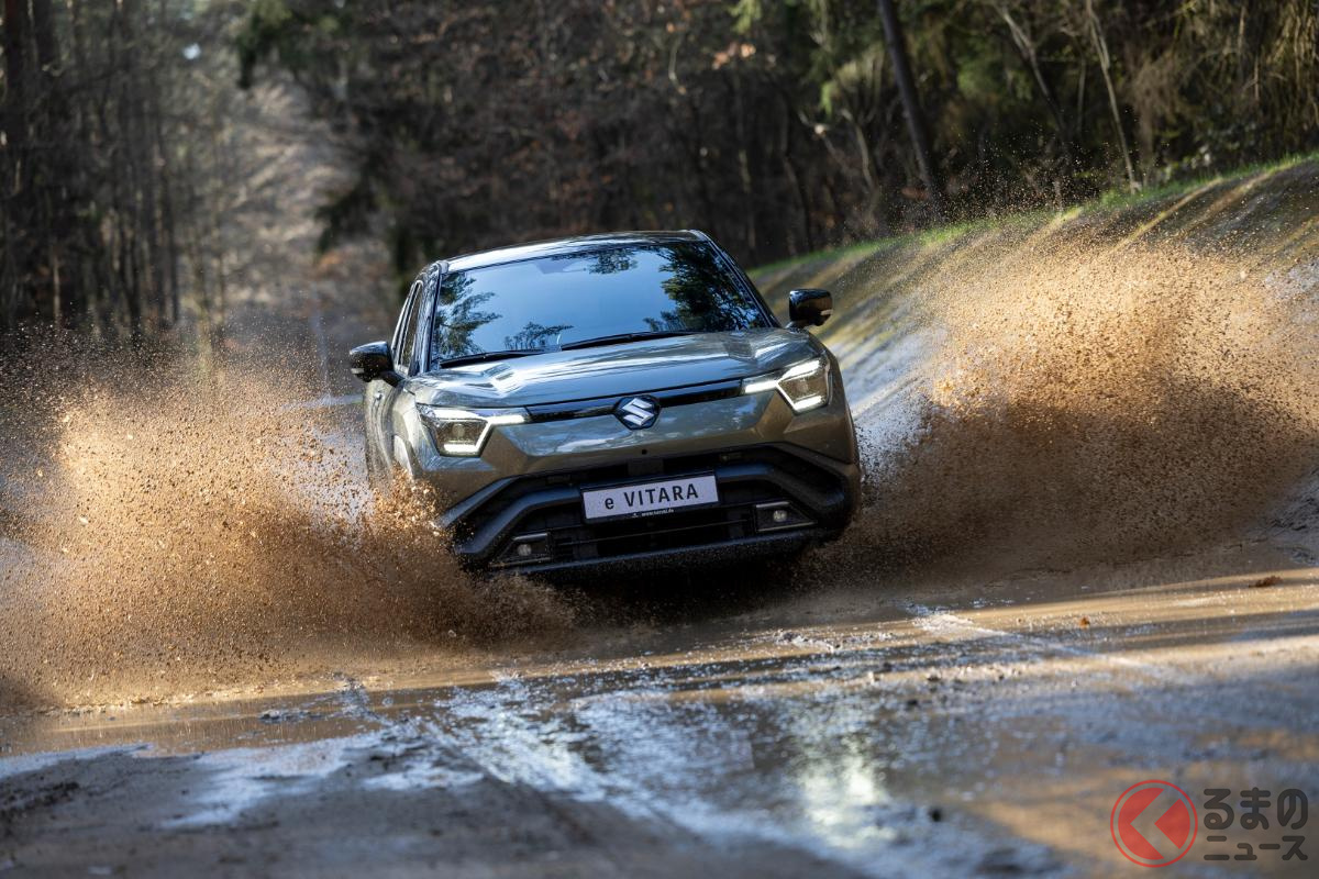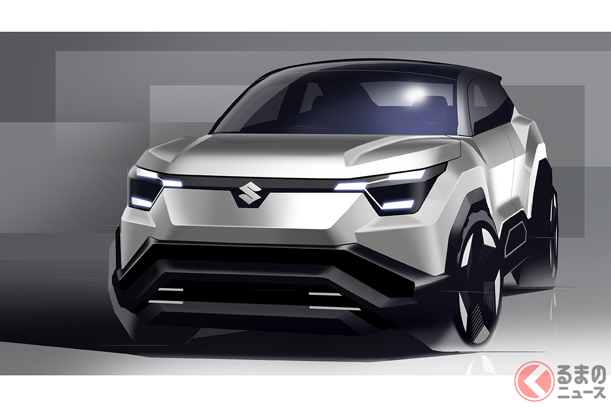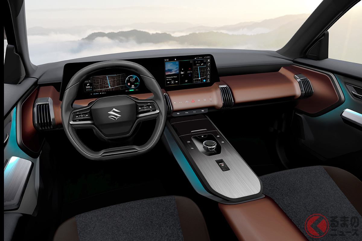 スズキ「新型コンパクトSUV」登場! 斬新“ゴツゴツ”デザイン×日本風のインテリア採用! 今夏にも登場の新たな“スズキの要”「新型eビターラ」デザインの特徴は?