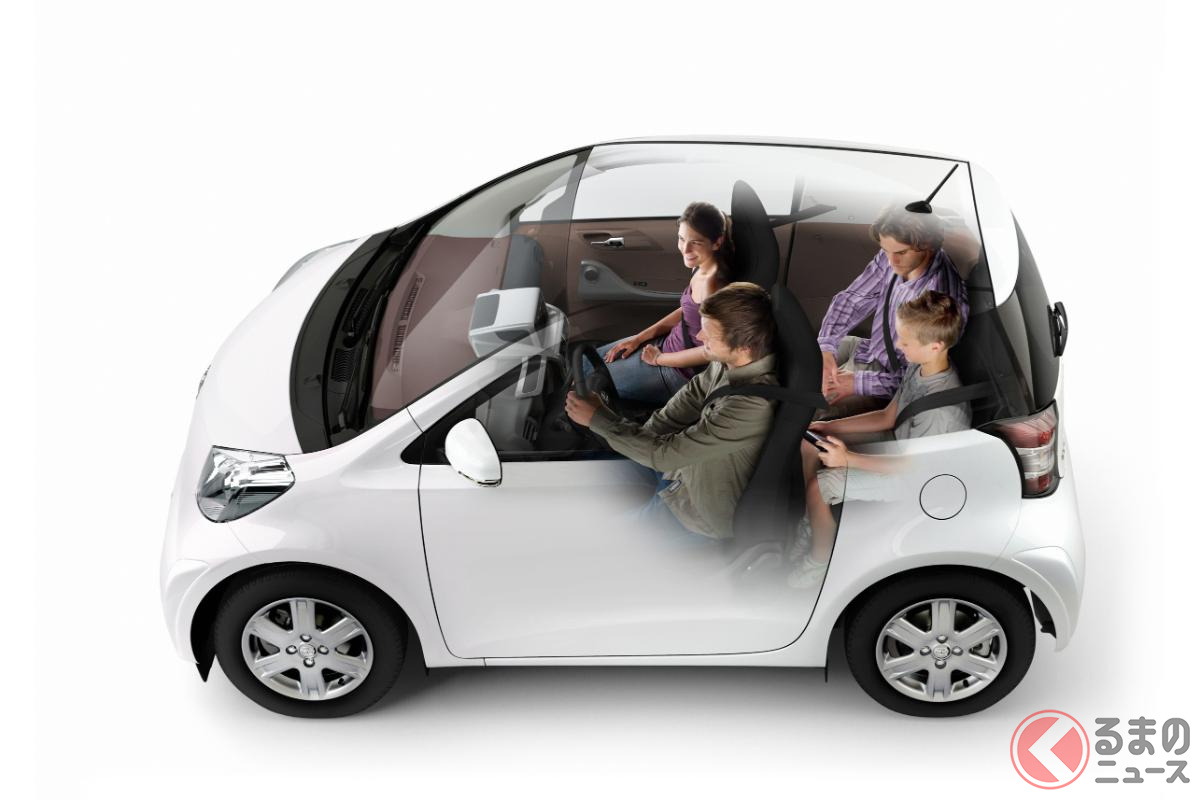 新車当時140万円! トヨタ「“4人乗り”コンパクトカー」がスゴかった! 全長3mの「“超”マイクロサイズ」でギュウギュウ“じゃない”!? “斬新すぎ”デザイン&「世界初の装備」も採用の「iQ」に注目!