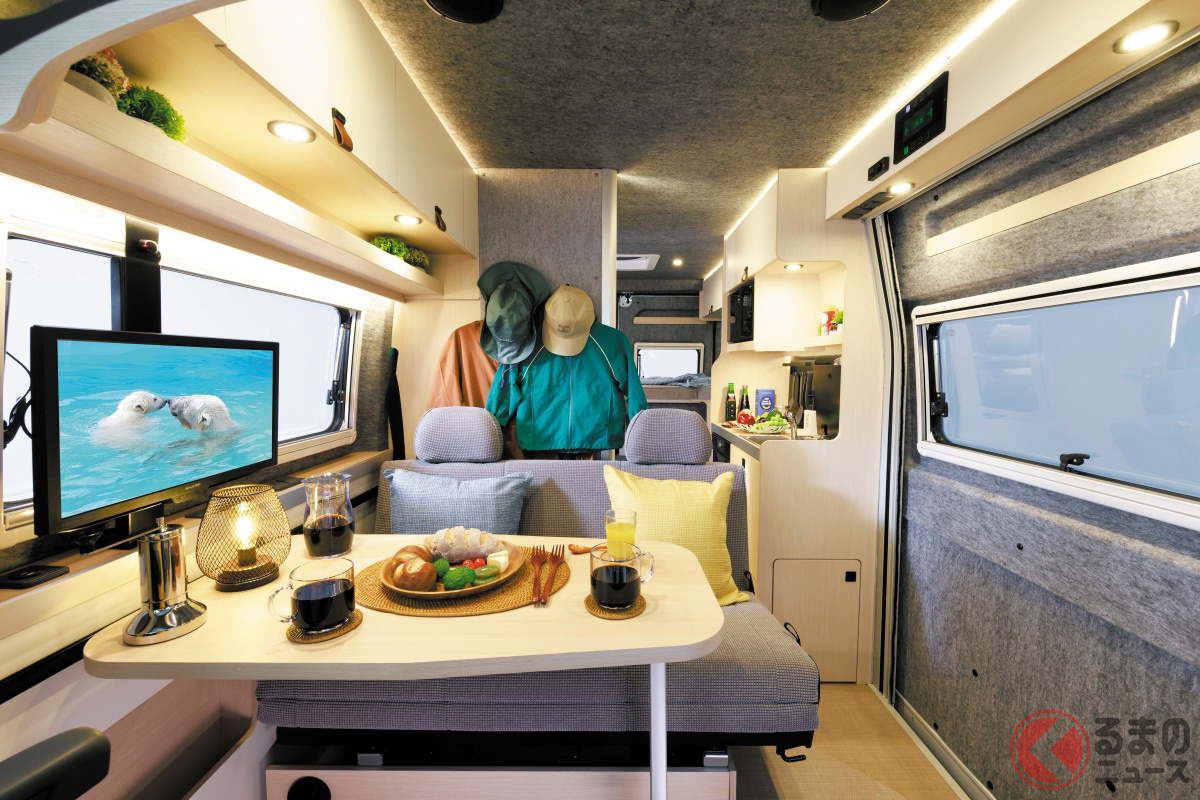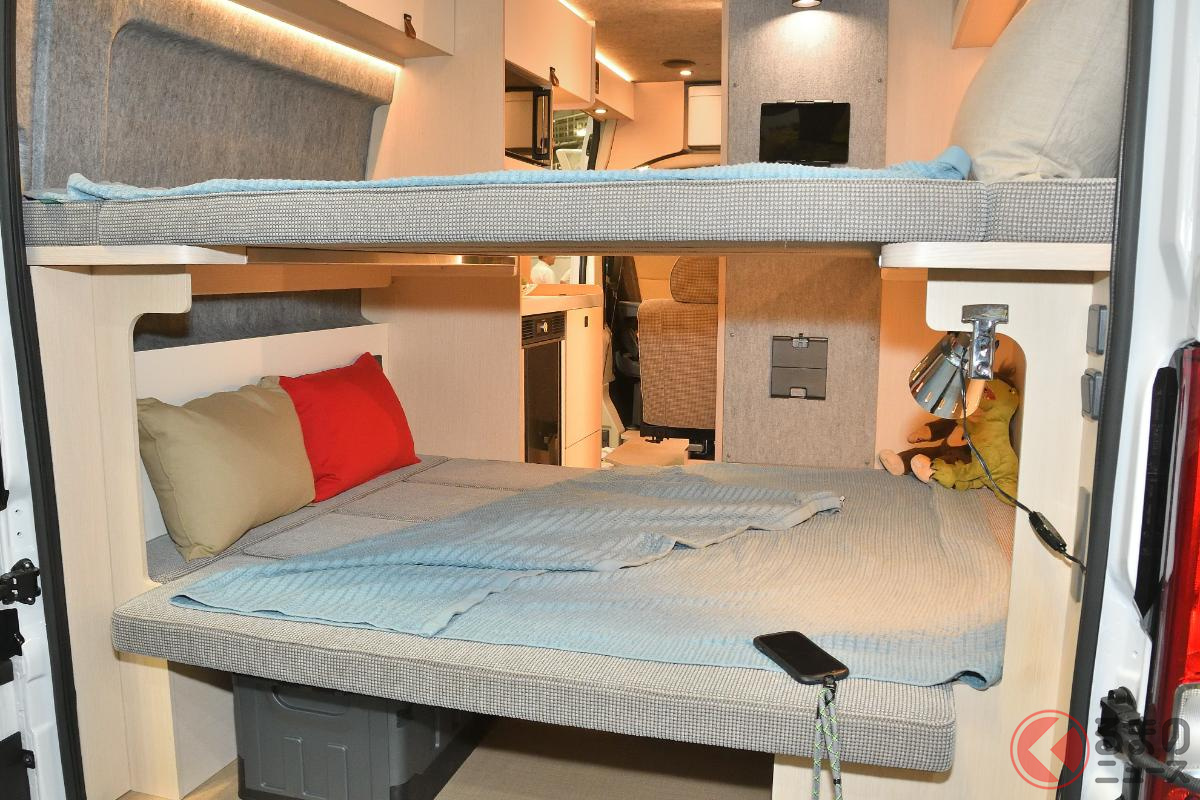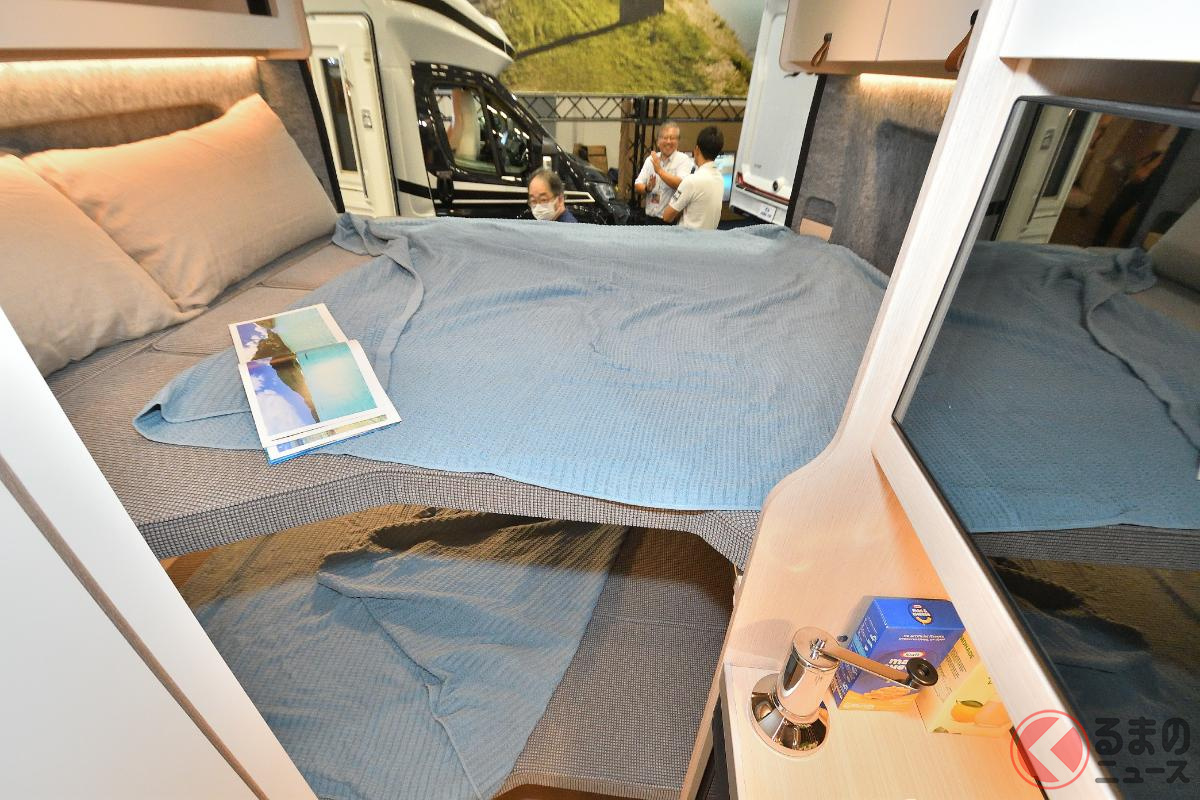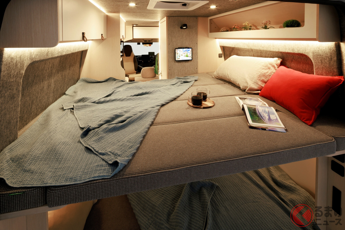 新型「車中泊」モデル「ブルージュ」初公開! ダブルベッド「2つ」完備で“大人4人”寝られる!? トイファクトリーのフィアット「デュカト“新型キャンピングカー”」に注目!