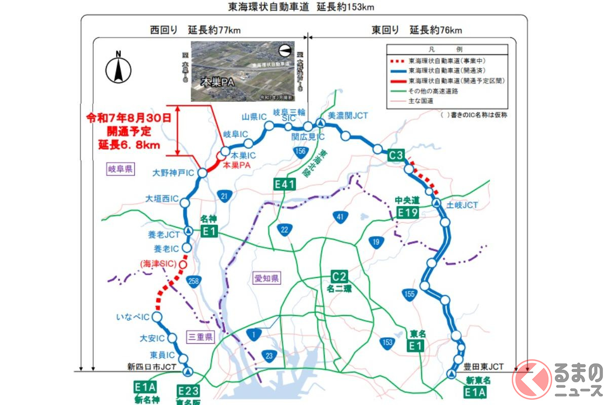 中央道〜名神高速の「新ルート」開通へ! “大渋滞”の一宮JCT「完全スルー」でスムーズに! 超便利な“東海版の圏央道”「東海環状道」北西エリアが8月末に開通