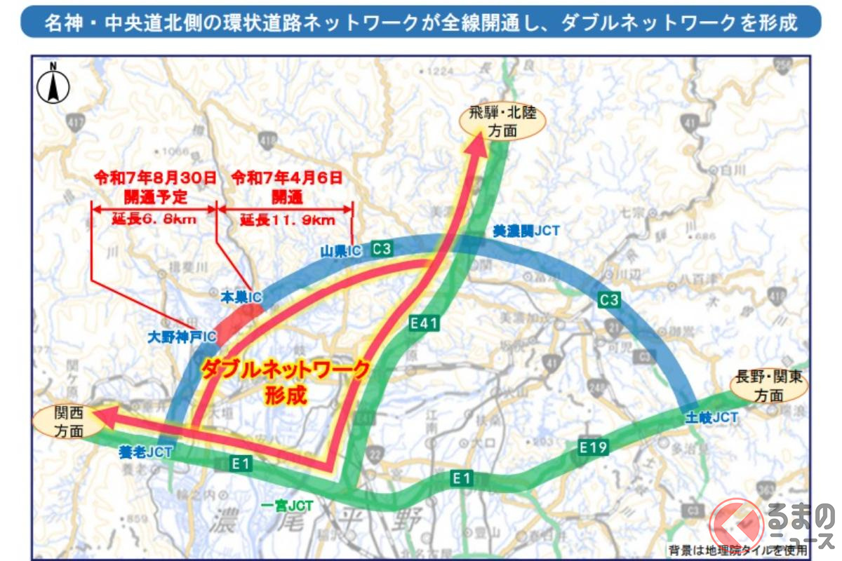 ネクスコ中日本は2025年8月30日、東海環状道の本巣IC~大野神戸ICが開通すると発表しました。