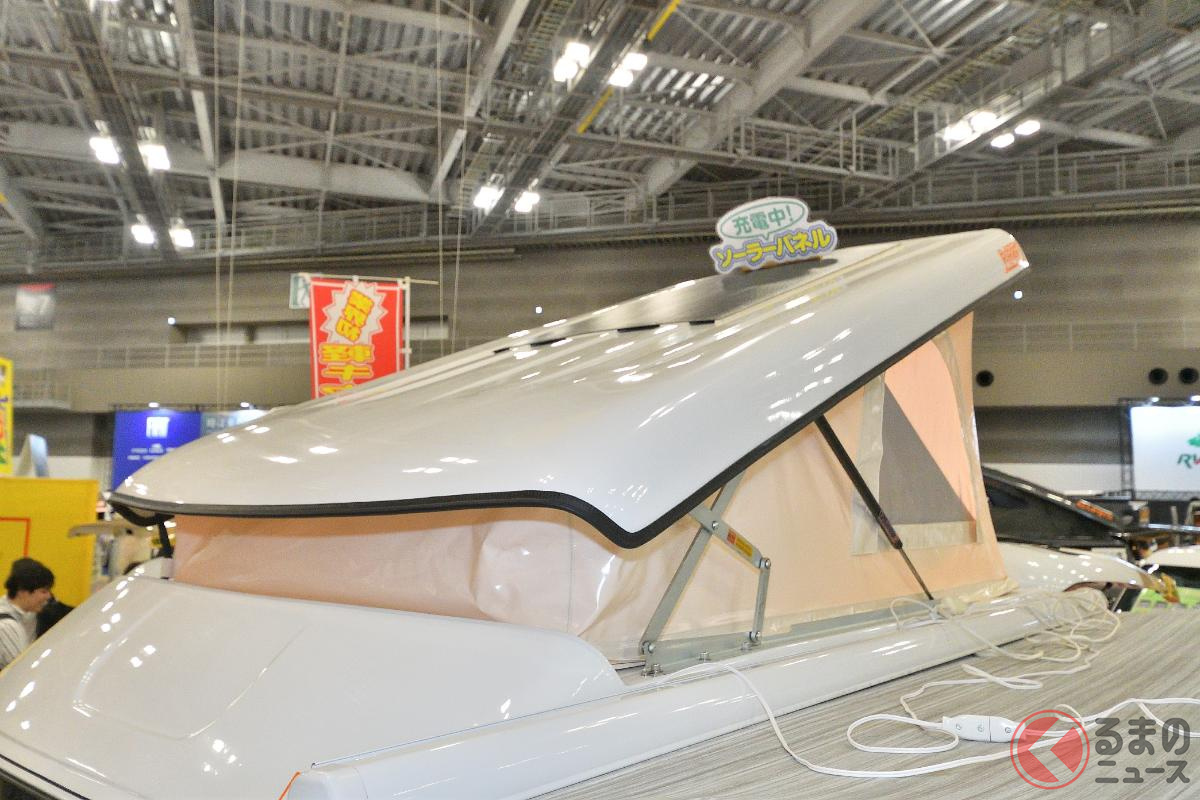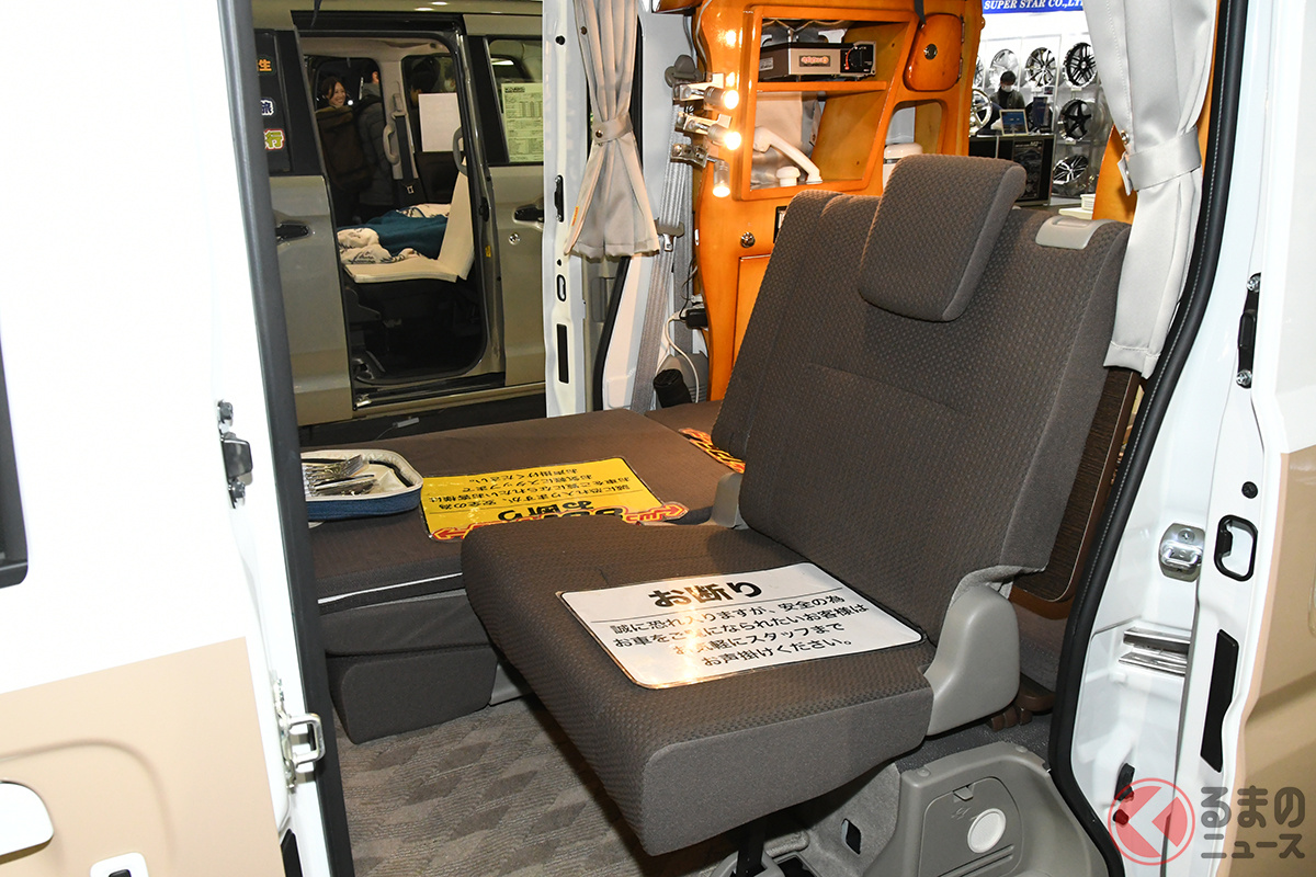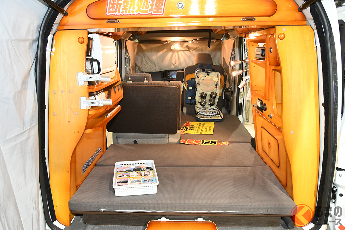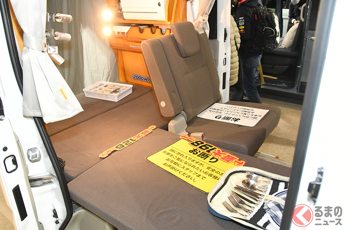 スズキ「“2階建て”軽バン!?」公開! 全長3.4mで「大人4人」“寝られる”「エブリイ」!? 電気も使えてめちゃ便利なオートワンキャンパー「給電くん」がスゴかった!