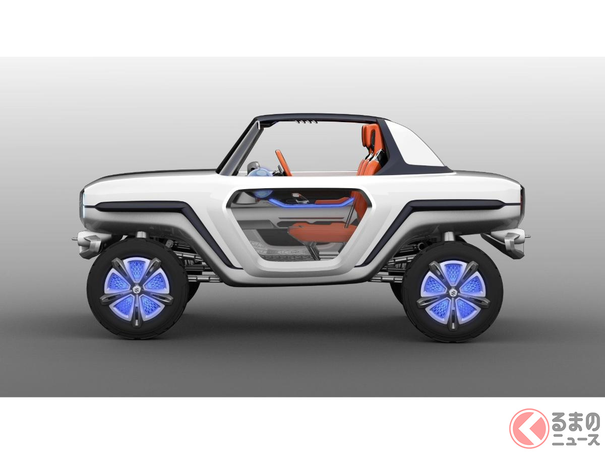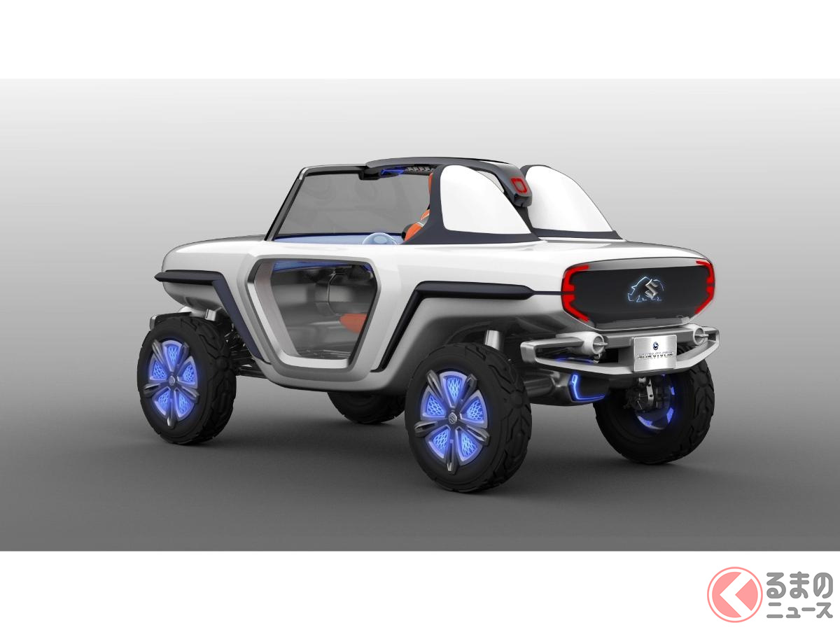 スズキ斬新「“2人乗り”ジムニー」!? めちゃレトロ顔の「丸目二灯SUV」は“悪路走破性”もスゴイ! 新発想の「スケスケ・ボディ」採用したコンパクト4WD「イーサバイバー」とは!