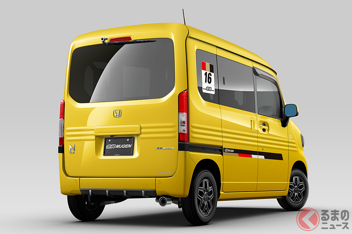 ホンダ「軽商用バン」めちゃスポーティな「無限バージョン」がスゴい! 存在感あるブラックエアロ×スポーツマフラーの本気モデル! カスタム仕様の「N-VAN」とは!