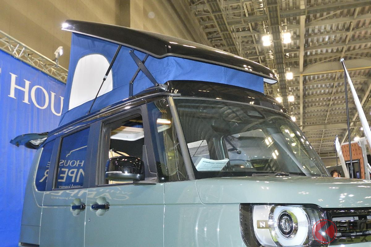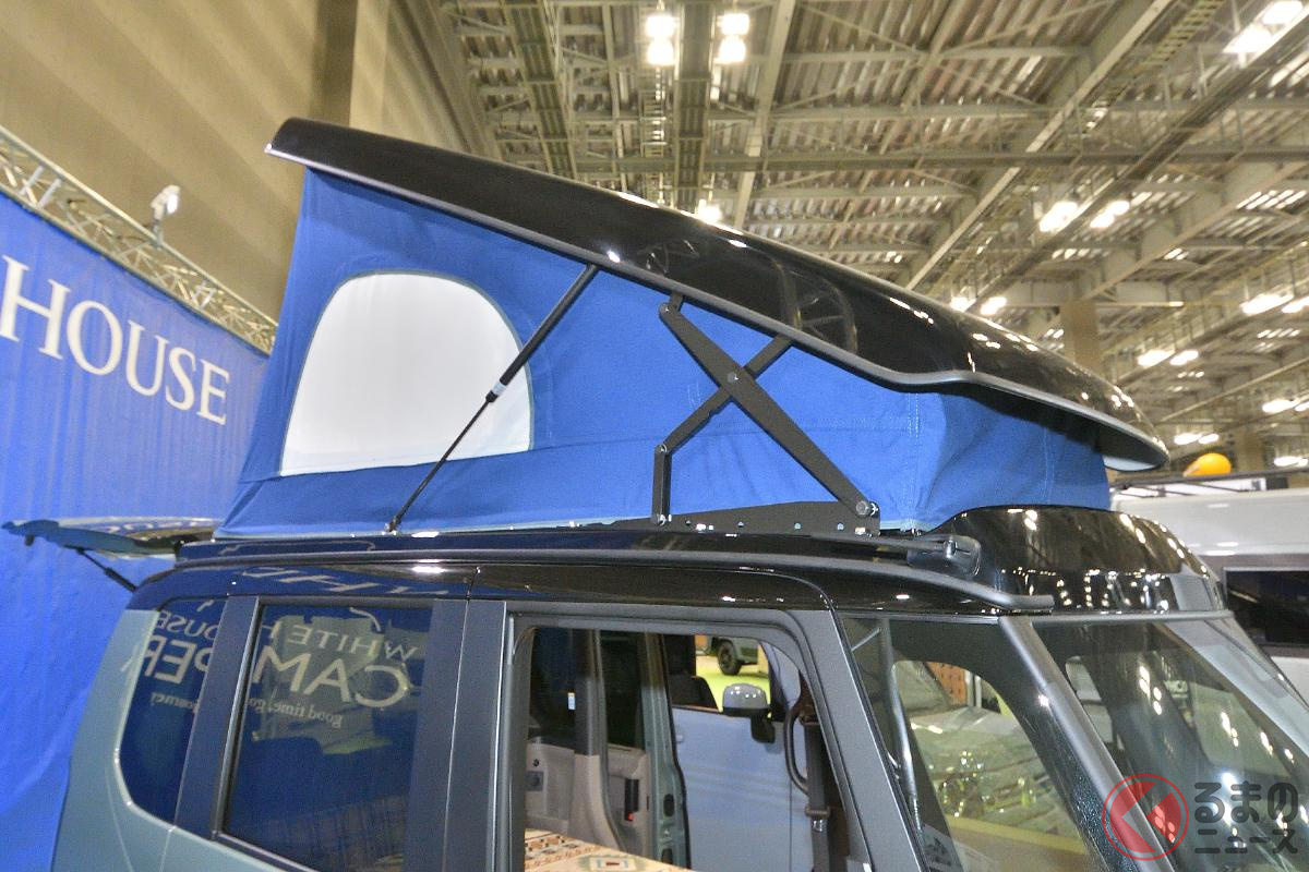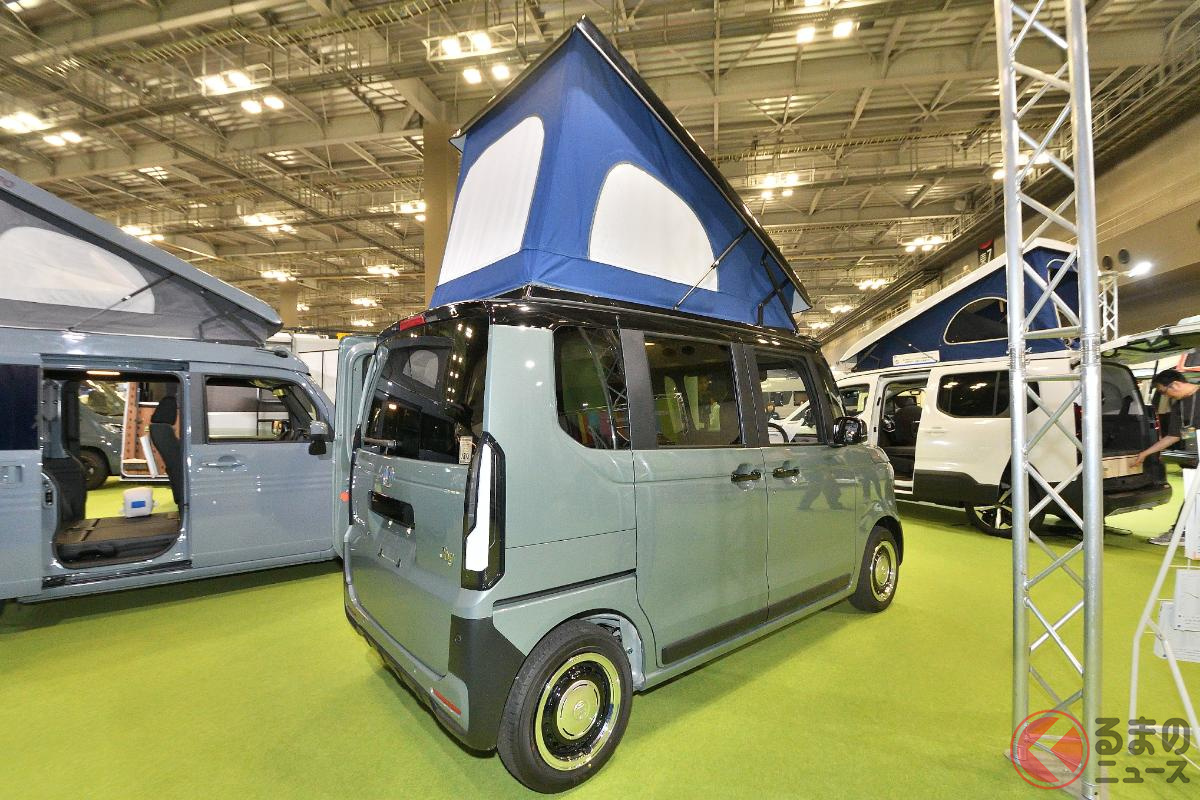 ホンダ「“2階建て”4人乗り軽ワゴン!?」実車展示! “パカッ”とルーフで「4人寝られる」N-BOX“JOY”! ホワイトハウスキャンパー「CAMPER NEO」に注目