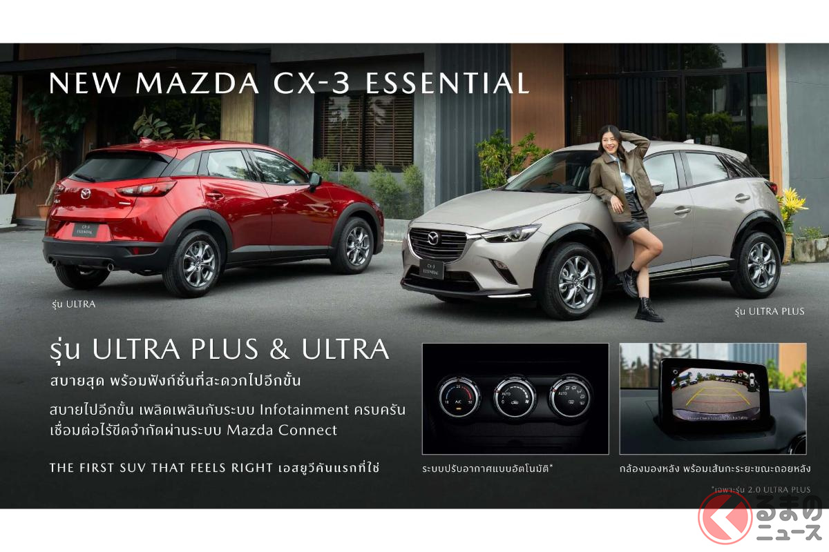 マツダ「新CX-3」 約315万円の「エッセンシャル」! 2.0リッターエンジンで156馬力! “値下げ”の「コンパクトSUV」泰国に登場