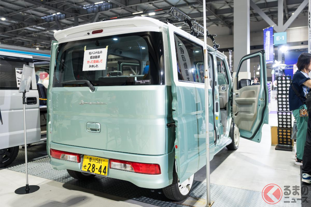 “左ハンドル”のスズキ「“軽”バン」公開! 143万円でまさかの外車風「エブリイ」に大変身!? 奇想天外マシンの正体とは