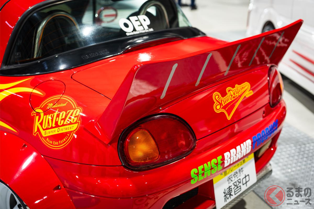 斬新ニンマリ顔! まさかの“軽規格超え”「カプチーノ」公開! 真っ赤&ド迫力のワイドボディがカッコイイOEPの「カスタムモデル」とは