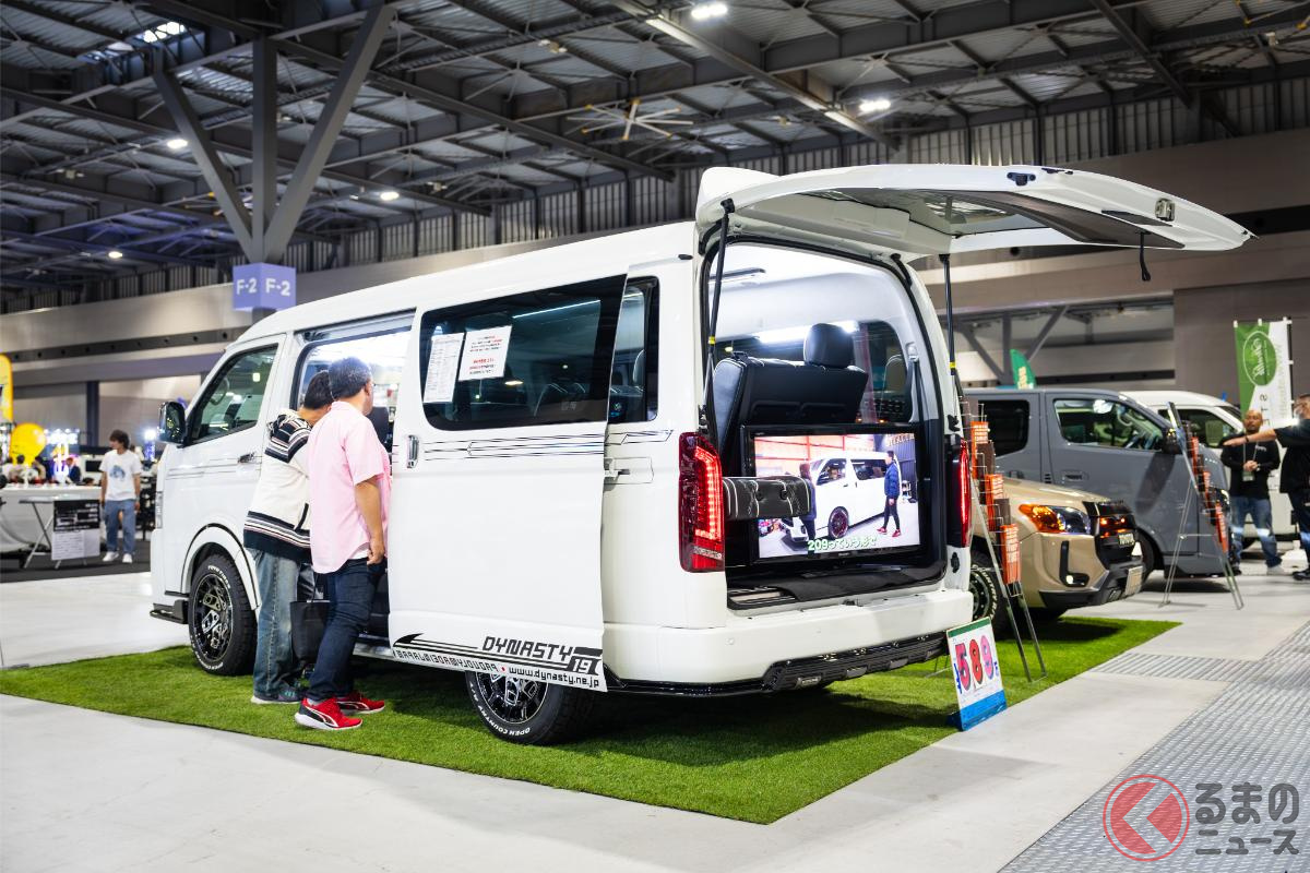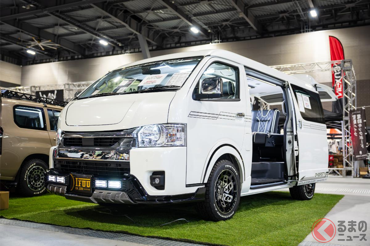 カスタムカーショップのIFUU(威風)がトヨタ「ハイエース」をベースに、多彩なシートアレンジを可能にしたカスタムカーを「オートメッセ愛知」にて展示していました。どのような特徴があるのでしょうか。