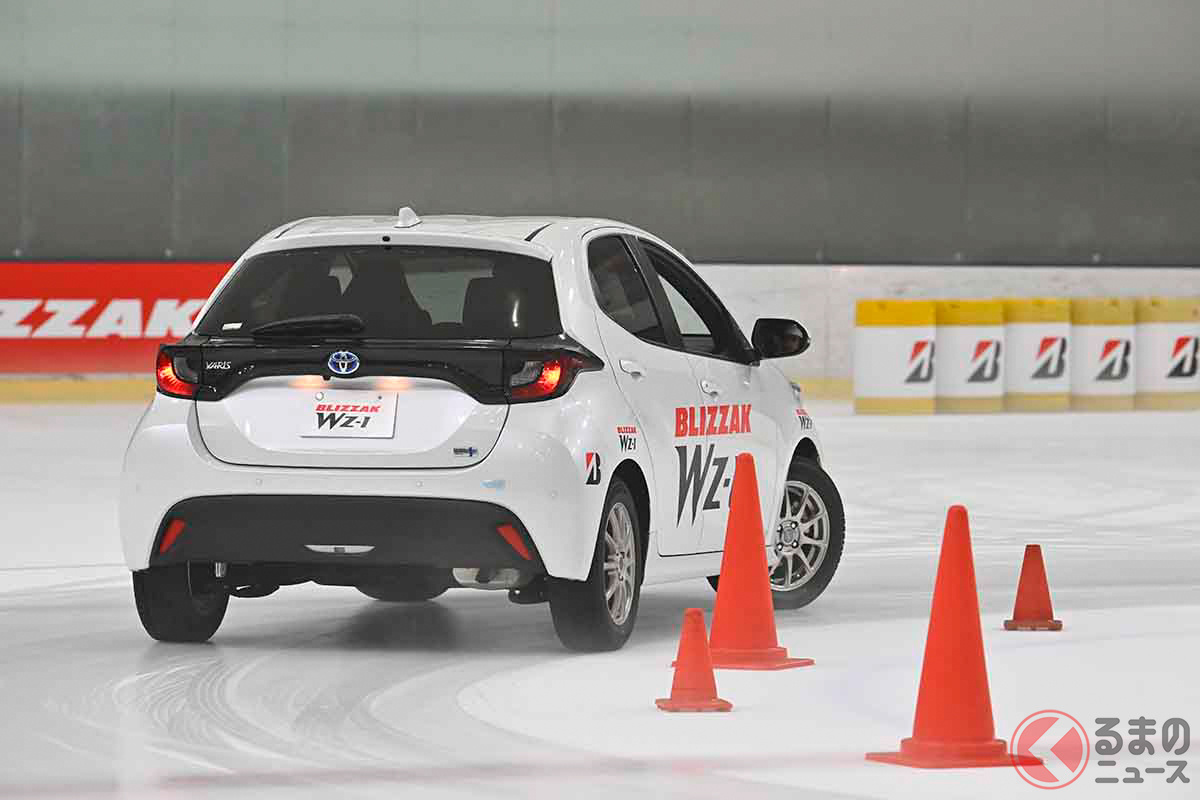 2025年9月から順次発売予定のブリヂストンの乗用車・SUV/4×4用スタッドレスタイヤ「ブリザック WZ-1」を履いたヤリスに乗り、アイス路面を試乗しました。現行モデルの「ブリザック VRX3」と比較して、どのような点が進化しているのでしょうか。本記事では、ドライ路面を試乗した様子も含めてお届けします。