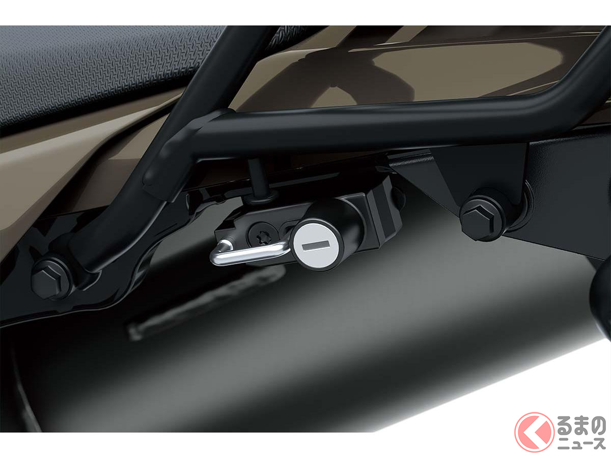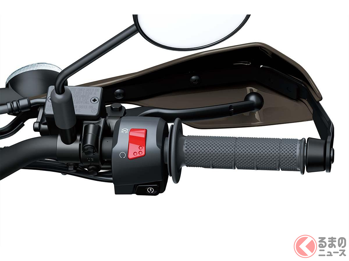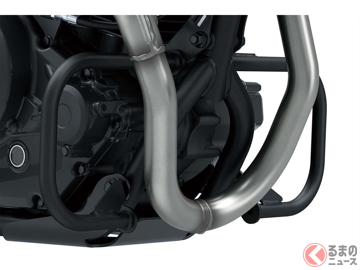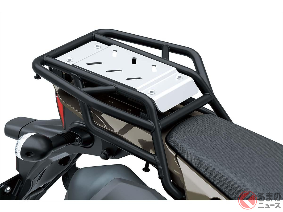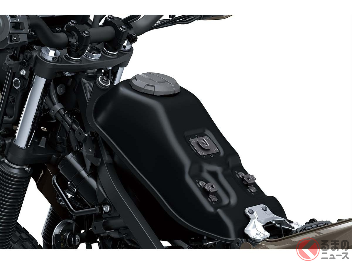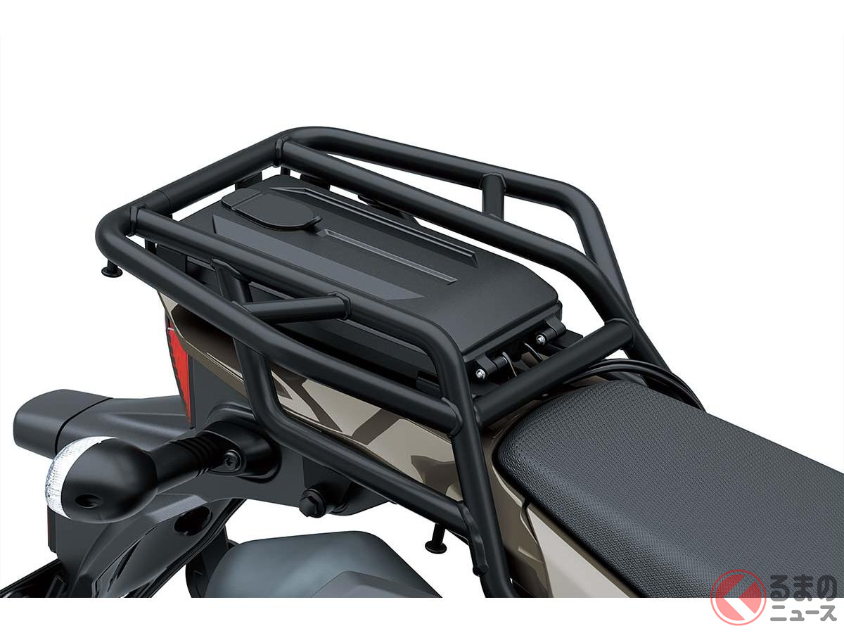 カワサキが超ゴツい「新型オフロードバイク」発表! あふれる“ミリタリー感”が超カッコいい「リアキャリア」や「エンジンガード」を標準装備! 新型「KLX230 DF」発売へ!