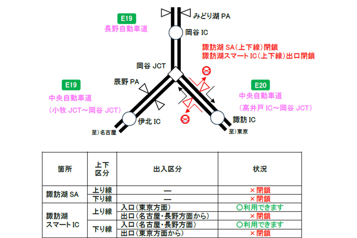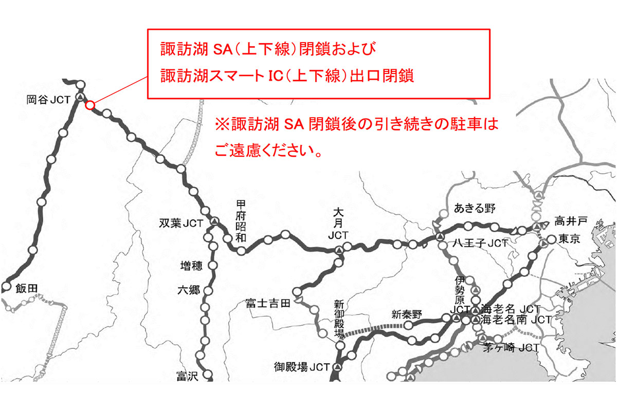 NEXCO中日本は2025年8月15日、中央道の「諏訪湖SA」を6時間だけ「全面閉鎖」します。