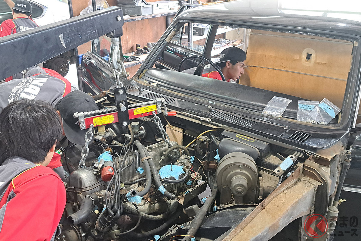 「東京オートサロン2026」に向け、日本自動車大学校(NATS)成田校の学生たちがカスタムカーの製作に励んでいます。なかでも日産「グロリア(3代目)」をベースにしたローライダー風カスタムカーについて、独自取材で明らかになった最新状況を紹介します。