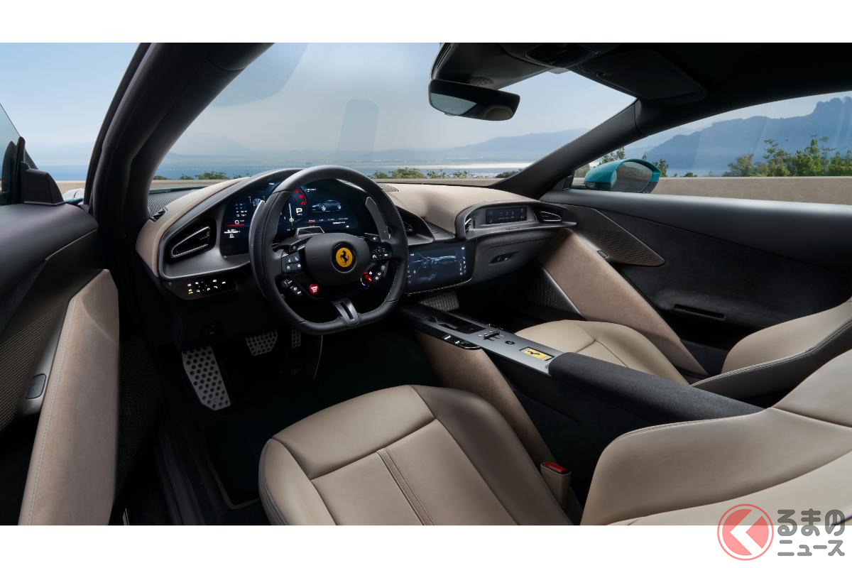 新型「4人乗り“FR”クーペ」に大反響! 「まるで芸術品」「ディスプレイが3つもあってカッコイイ」「内装もゴージャス」「旧型の方が好き」の声も! 全長4.6m級“ちょうどいいサイズ”のフェラーリ「アマルフィ」登場!