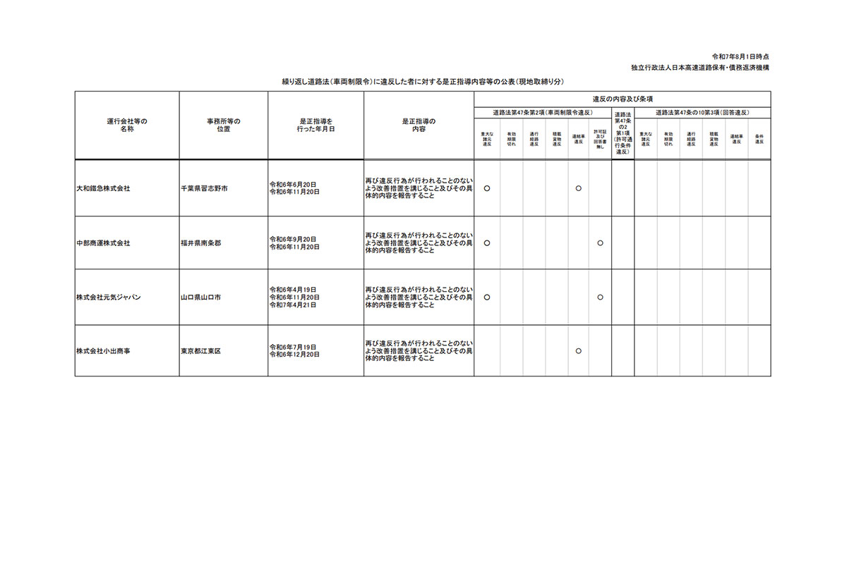 NEXCO西日本は、高速道路の車両制限令違反者に対する是正指導を公表しました。SNSなどでも、悪質な違反者に対しては厳しい声が寄せられています。
